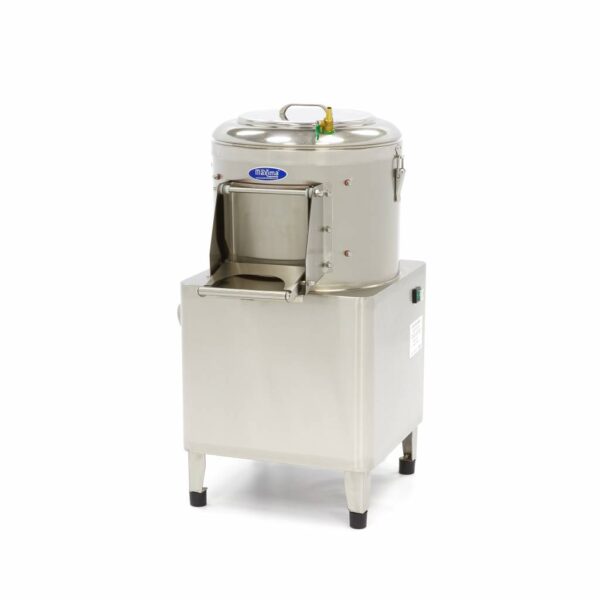 Ontlast je keukenbrigade met de Maxima aardappelschrapmachine. Dit robuuste vloermodel is ideaal voor grote keukens die veel aardappelen of wortelen verwerken. Elke cyclus duurt slechts 2 tot 3 minuten, waardoor je kostbare tijd bespaart tijdens piekuren. Dankzij de krachtige motor en betrouwbare prestaties kun je rekenen op consistente resultaten – batch na batch.
