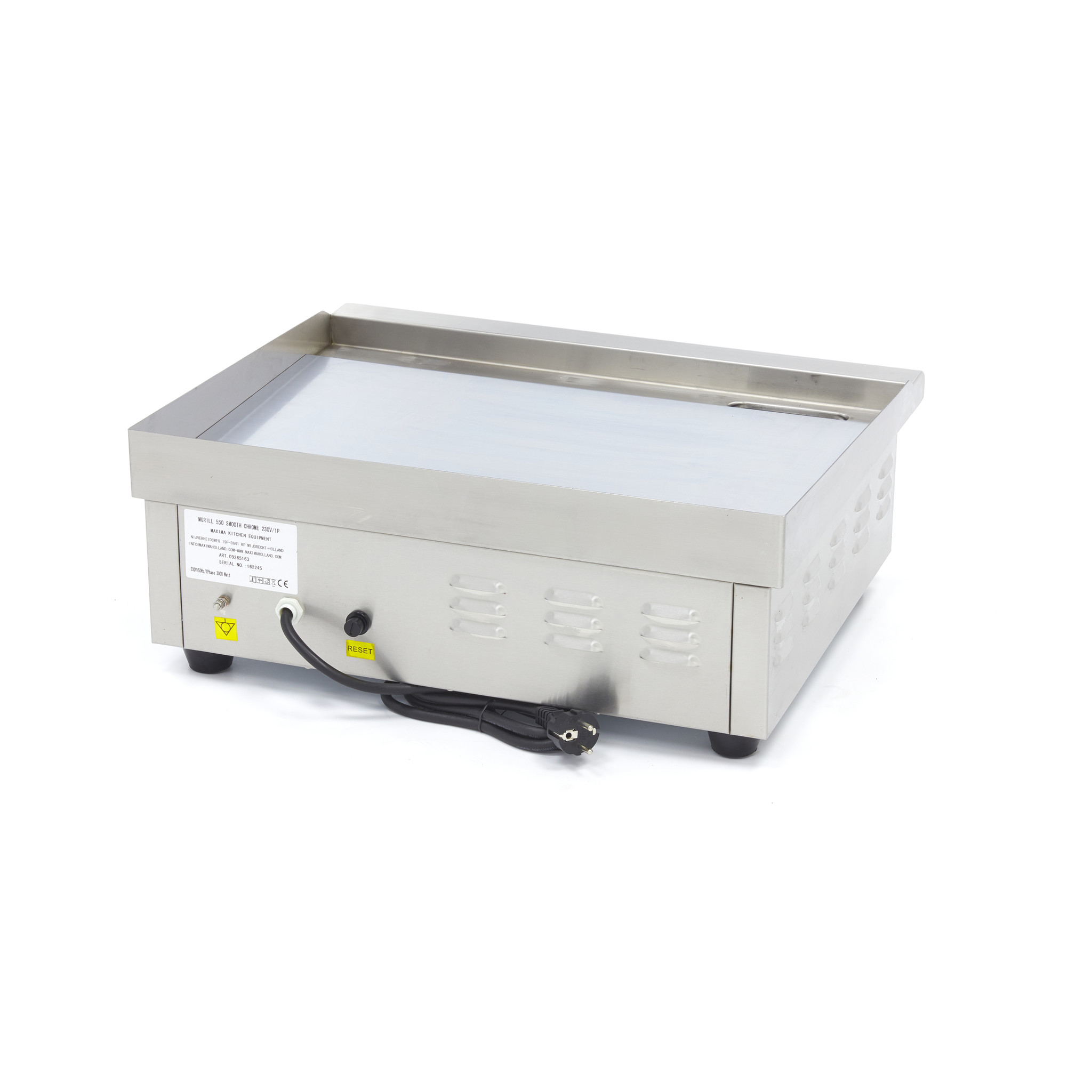Dankzij de RVS-behuizing en het RVS-opvangbakje voor vet is schoonmaken een simpele klus. Eerst verwijder je de grove resten met een borstel of schraper. Hardnekkig vuil verwijder je door het apparaat tot 75 °C te verwarmen en wat water op het grilloppervlak te gieten. Het is wel aan te raden om handschoenen te gebruiken. Daarna gebruik je een vochtige doek met wat mild reinigingsmiddel om alle onderdelen schoon te vegen. Dankzij de rubberen pootjes staat deze professionele grillplaat stevig en stabiel tijdens het gebruik.