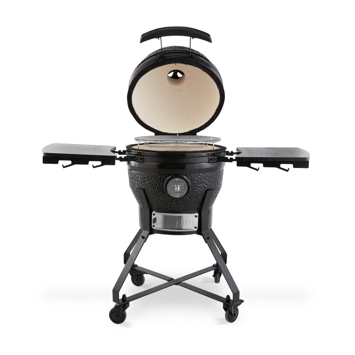 De regelbare luchttoevoer onderaan en de luchtafvoer in het deksel zorgen voor een optimale luchtcirculatie. Hiermee pas je de temperatuur aan. Ook de in hoogte verstelbare grillplaten helpen hierbij. Zo plaats je de gerechten altijd op de ideale hoogte boven het vuur. De wand en vuurschaal zijn van keramiek (mulliet), zodat de Kamado bestand is tegen hoge temperaturen en temperatuurverschillen.