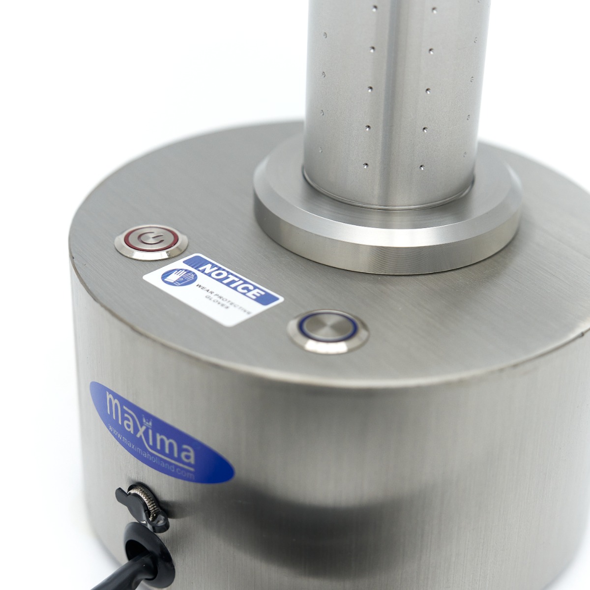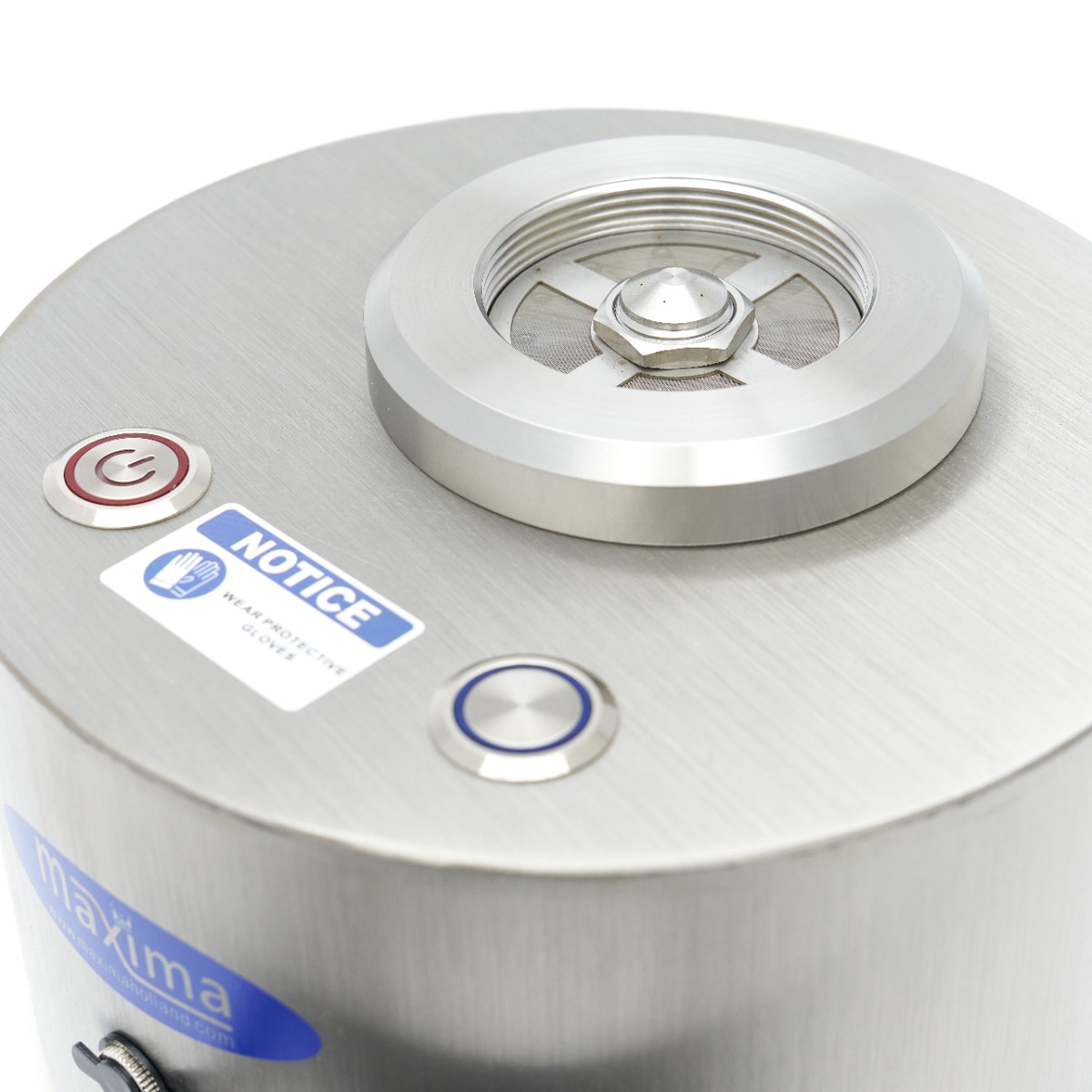 Het apparaat is zeer eenvoudig te bedienen. De knoppen zijn gemaakt van RVS en waterdicht. Met één druk op de knop start en stopt de droogijsmachine vanzelf. Deze dry ice machine heeft een zeer hoog rendement van bijna 20% (185 gram droogijs uit 950 gram CO2). Je kunt de droogijsmachine simpel aansluiten op vloeibaar koolzuur.
