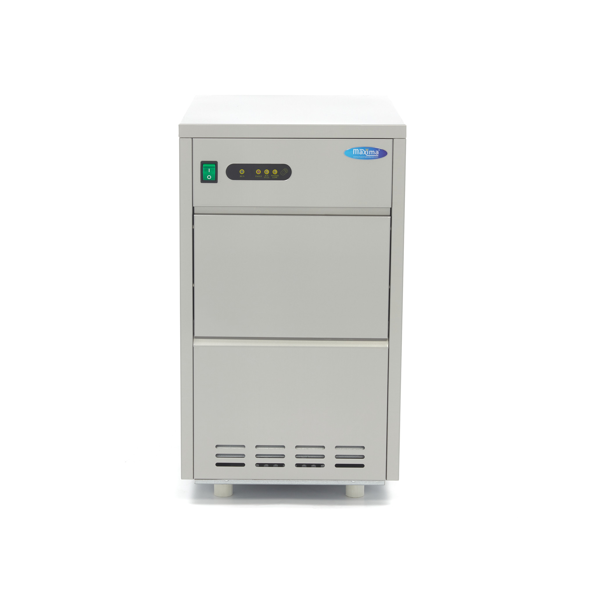 De behuizing en de deur van deze ijsblokjesmachine is van 18/8 RVS en kun je makkelijk schoonmaken met een vochtige doek. De binnenkant van de ijsmachine is gemaakt van ABS. Wel is het van belang om het apparaat na het reinigen goed droog te vegen met een zachte doek. Dankzij de verstelbare pootjes blijft de ijsblokmachine stabiel op zijn plek staan.