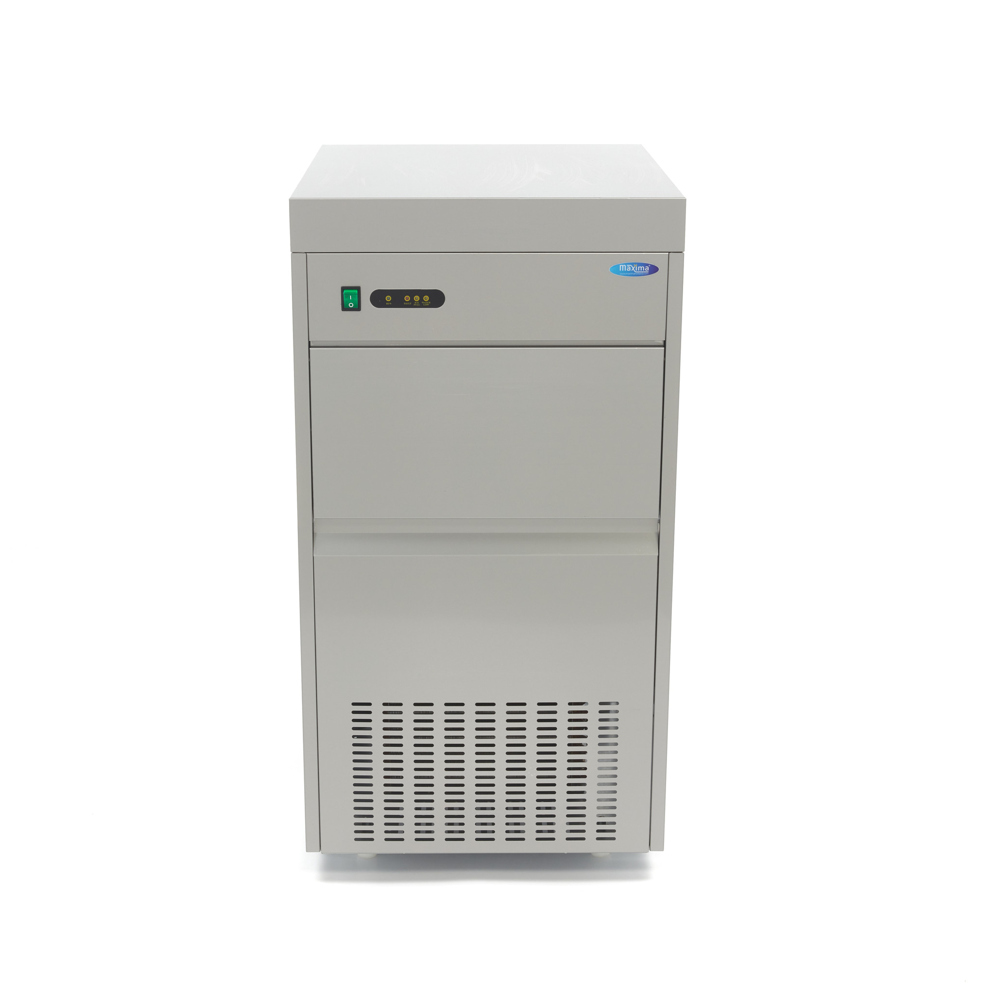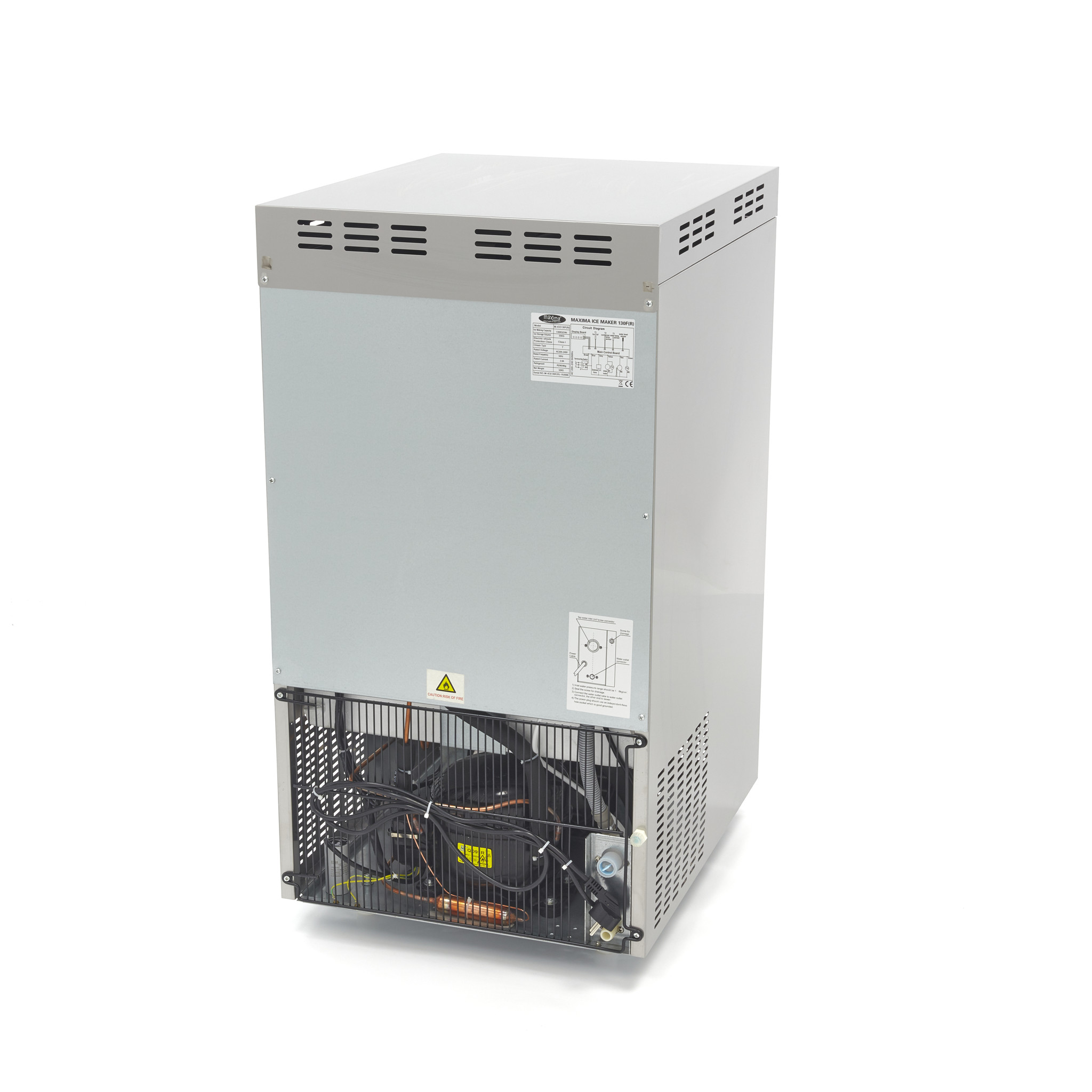 Bij het presenteren van verse producten in de koelvitrine of voor het vervoeren van etenswaren heb je grote hoeveelheden schilferijs nodig. Dankzij deze professionele schilferijsmachine produceer je dagelijks 130 kg schilferijs. Om de hele dag door vers schilferijs bij de hand te hebben, kun je 40 kg ijs opslaan in de daarvoor bestemde opslagruimte in de ijsmachine zelf. De crushed ice machine wordt geleverd met een handige ijsschep om het ijs hygiënisch uit de voorraadbak te scheppen. Dit is een undercounter model wat betekent dat de ijsmachine eenvoudig onder een counter of een werkbank geplaatst kan worden.