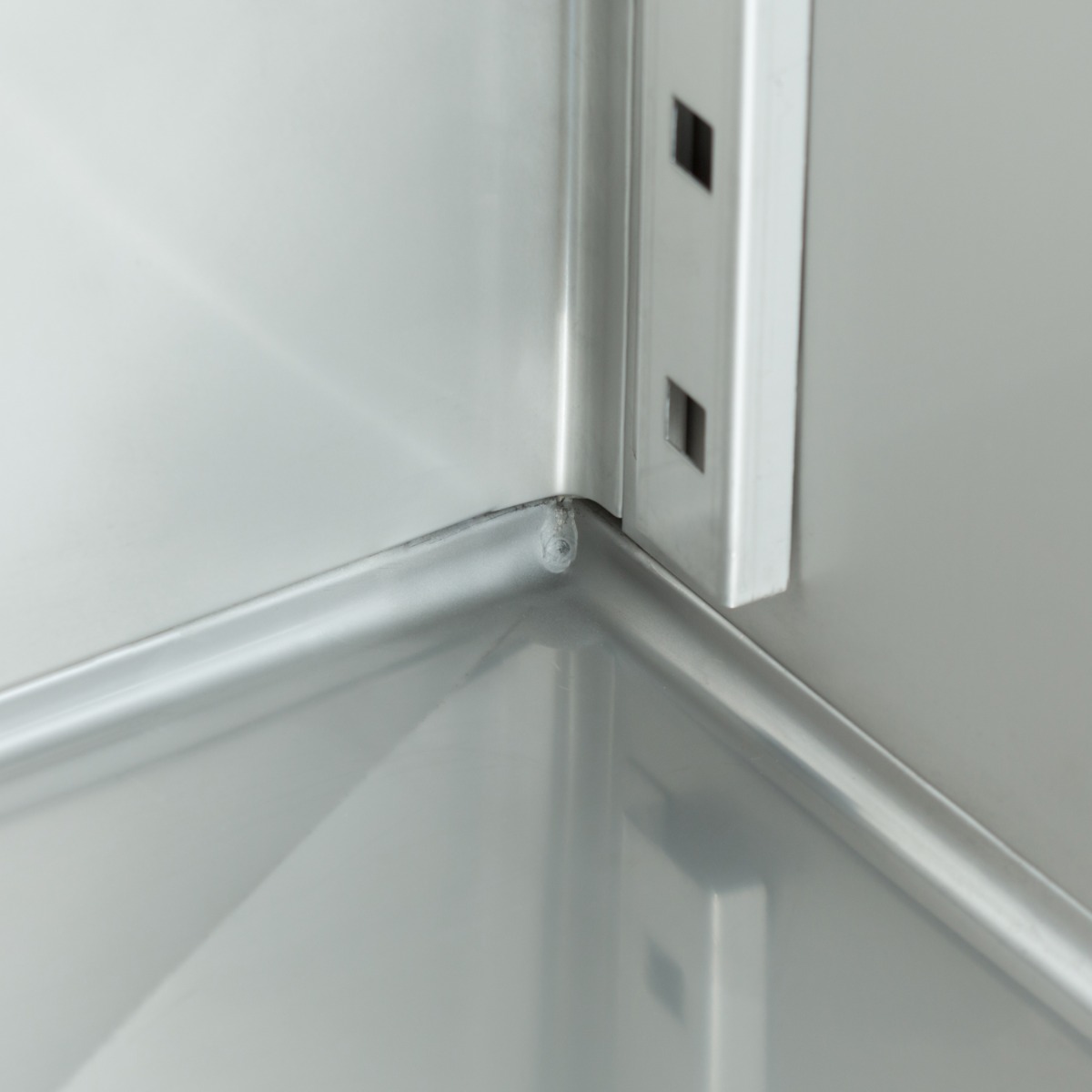 De binnenkant van de luxe koelkast is luxe afgewerkt met afgeronde hoeken. Dit heeft als voordeel dat vuil zich niet kan ophopen in de hoeken en dat producten hygiënisch gekoeld worden. Dankzij de ingebouwde zuinige LED-verlichting zie je precies welke ingrediënten er in de koelkast liggen. De juiste temperatuur stel je in met de digitale temperatuurregelaar. Tot op de graad nauwkeurig kun je temperaturen instellen tussen de de -2° tot +8° Celsius. Deze professionele bakkerij koelkast is uitgerust met een geventileerd koelsysteem met verdamper. Dankzij de unieke koelcyclus wordt ijsvorming in de koelkast aanzienlijk verminderd. Het koelmiddel dat gebruikt wordt is R290 en vrij van CFC. De maximale omgevingstemperatuur is 43° Celsius.