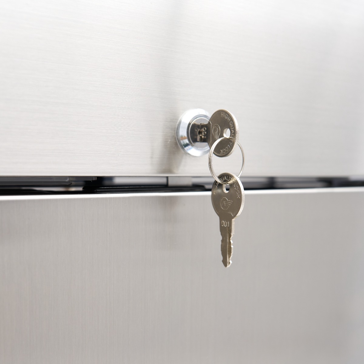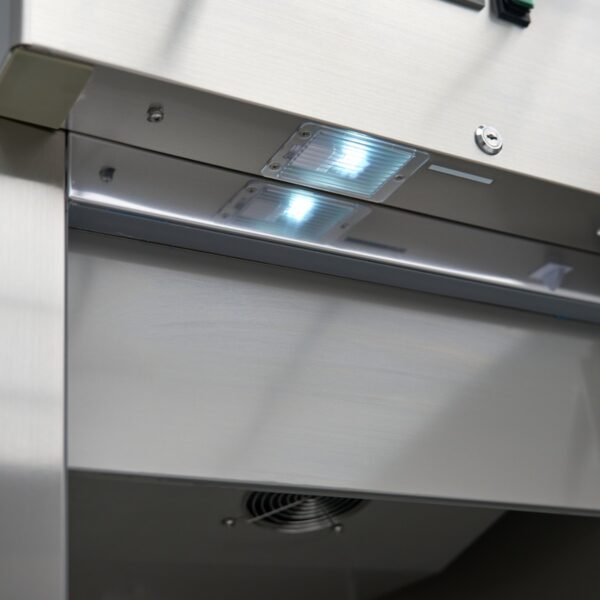 De koelkast beschikt over drie stevige, verstelbare roosters (55 x 53 cm), perfect geschikt voor diverse soorten ingrediënten. De zelfsluitende deur is voorzien van een verwarmd, antibacterieel deurrubber en een slot met twee sleutels voor extra veiligheid. De afgeronde hoeken aan de binnenkant voorkomen vuilophoping en maken het schoonmaken eenvoudiger. Dankzij de vier zwenkwielen, waarvan twee met rem, is de koelkast makkelijk te verplaatsen en veilig te positioneren. De energiezuinige LED-verlichting zorgt voor goed zicht zodra de deur wordt geopend.