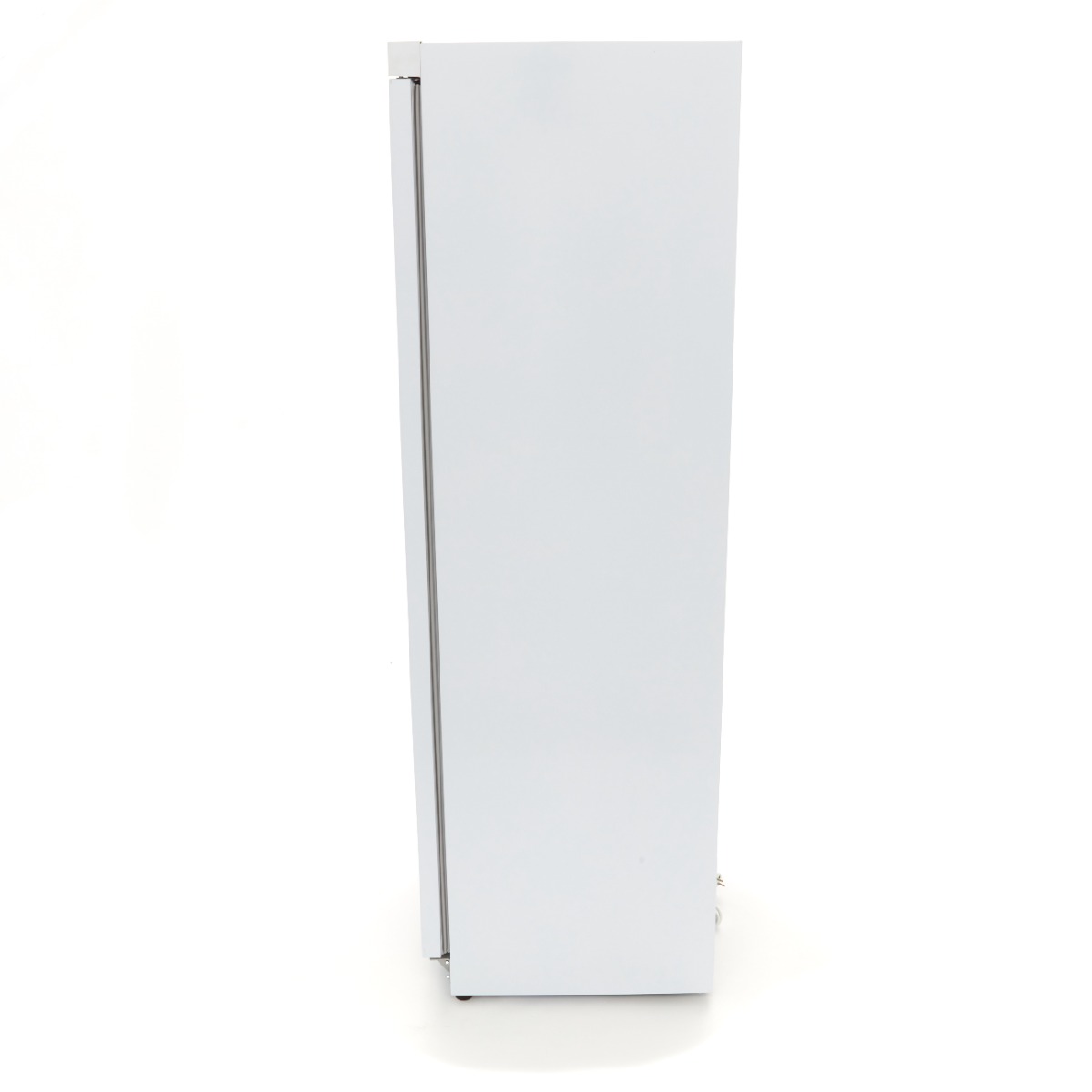 Deze koelkast heeft een gebruiksvriendelijke elektronische temperatuurregeling en een digitaal display, zodat je de temperatuur gemakkelijk kunt aflezen en instellen. Deze koelkast maakt gebruikt van een statische koeling met ventilator, waardoor de inhoud gelijkmatig gekoeld blijft. Het voorkomt ook grote temperatuurverschillen. Hij bereikt snel de gewenste temperatuur en minimaliseert ijsvorming met een koelcyclus om de zes uur. De koelkast gebruikt R600a koelmiddel, dat CFK-vrij is. Je kunt de richting waarin de deur opent aanpassen. De koelkast wordt geleverd met twee verstelbare poten aan de voorkant en twee wielen aan de achterkant, waardoor hij gemakkelijk te verplaatsen is als dat nodig is.
