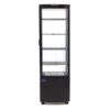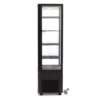 Deze koelvitrine van hoge kwaliteit heeft een capaciteit van 235 liter en biedt ruimte voor een groot aantal producten. De producten die je maakt in de bakkerij of in je horecazaak wil je graag laten zien aan je klanten. Dankzij de grote ramen aan elke zijde en de energiezuinige LED-verlichting staan producten mooi in de schijnwerpers. De staande koelvitrine wordt geleverd met vier gecoate roosters. Daarnaast is het mogelijk om extra roosters bij te bestellen zodat je nog meer producten kunt etaleren. De vitrine afsluiten is mogelijk met het ingebouwde slot met twee bijgeleverde sleutels.