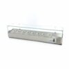Een opzetkoelvitrine met een afmeting van 180 cm is ideaal te gebruiken in restaurants en hotels. De opzetvitrine met plek voor 8 x 1/3 gastronormbakken is zeer geschikt om ingezet te worden als zelfbedieningsunit bij bijvoorbeeld het ontbijt- of saladebuffet. Dankzij de rechthoekige glazen ruiten aan de boven- en voorkant van de koeling kunnen klanten goed zien welke ingrediënten in de GN-bakken liggen. De GN-bakken en bijhorende deksels zijn apart verkrijgbaar en worden niet meegeleverd.