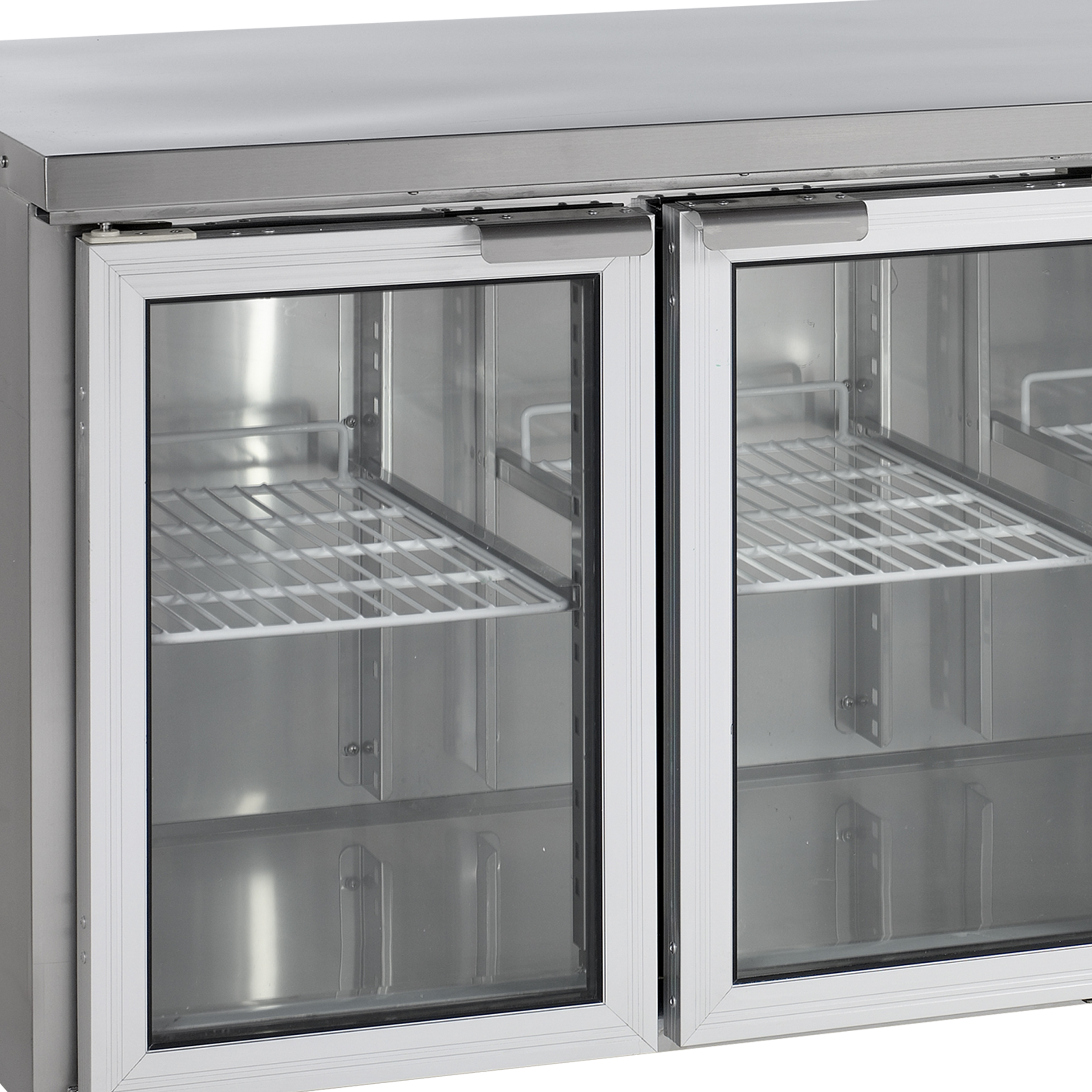 De CK-serie toonbankkoelers van roestvast staal SS304 is gemaakt voor professionele keukens en heeft daarom GN1/1-afmetingen. De toonbanken zijn verkrijgbaar in verschillende maten en u kunt kiezen uit massieve deuren, glazen deuren of lades. Bovendien hebt u de keuze tussen modellen met een afneembaar tafelblad met of zonder achterwand. Ze hebben allemaal geventileerde koeling voor een gelijkmatige en constante temperatuur.