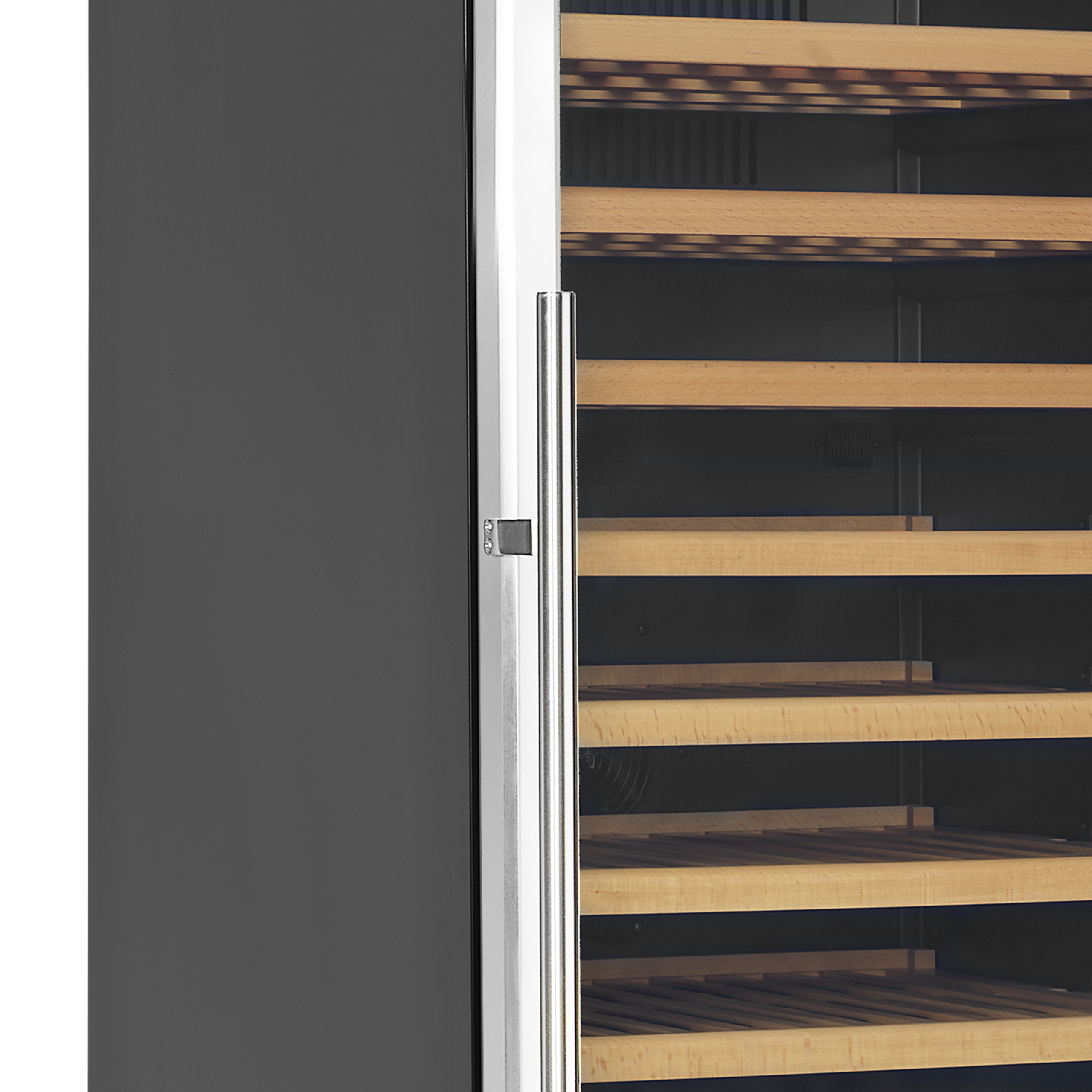 De TFW-S-serie wijndisplaykoelers van roestvast staal biedt een eigentijdse oplossing voor het presenteren en bewaren van wijnflessen. Een elegant ontwerp met een roestvast stalen front, een zwarte binnenkant, zachte ledverlichting en uitschuifbare houten planken. Het moderne koelsysteem is zeer efficiënt en zorgt voor minder lawaai, minder warmte en een lager energieverbruik van de koeler.