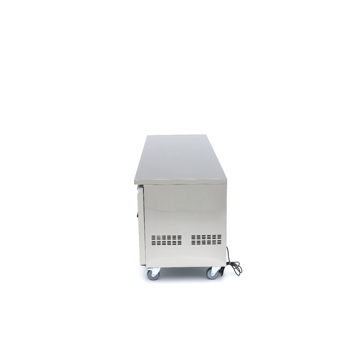 Deze koelwerkbank geeft de mogelijkheid om een grote voorraad gekoelde producten op te slaan. Met een breedte van 223 cm en een diepte van 70 cm wordt er meteen een ruim werkblad gecreeërd. Voldoende ruimte om met twee of drie personen te werken aan de voorbereidingen of het opmaken van mooie gerechten. En de producten die pak je eenvoudig onder het werkblad uit de koeling.