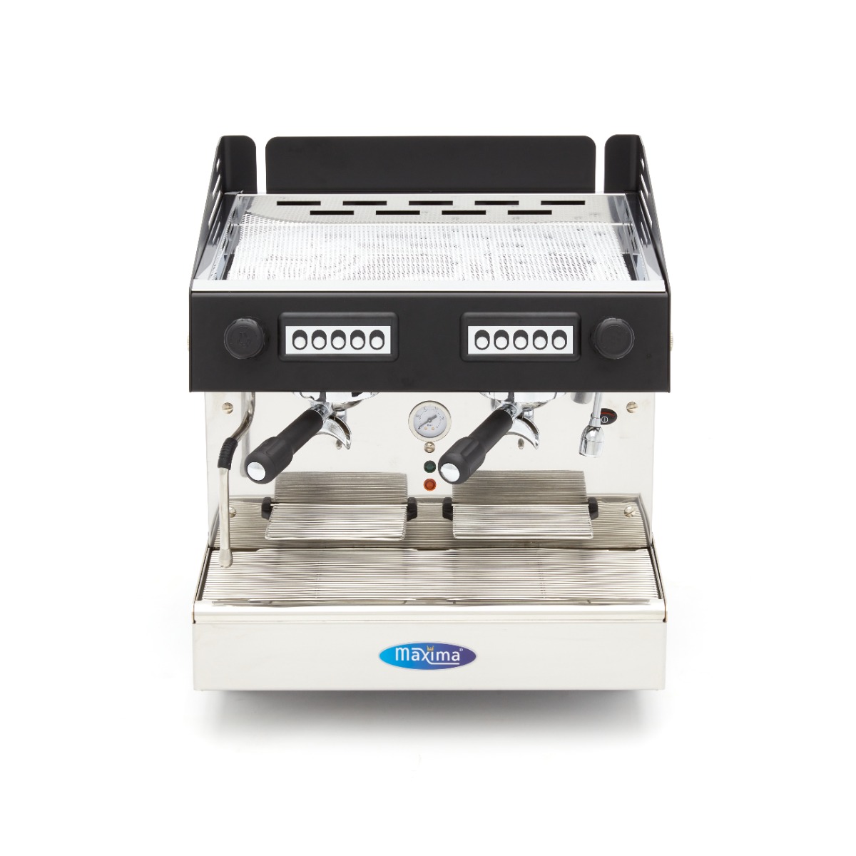 Deze compacte espressomachine is een aanwinst voor elke horecagelegenheid. Hij heeft niet alleen veel functies, maar is ook een zeer betrouwbaar apparaat. De mooie zwart gecoate metalen behuizing geeft hem een luxe en elegante uitstraling. Hij heeft een boiler van 6,5 liter, wat betekent dat hij tot 360 kopjes per uur kan zetten. Hij is ook uitgerust met twee pistons met een directe pre-infusiekamer. Er zijn vier beschikbare koffiedoseringsopties per groep: espresso, grote koffie, twee espresso’s en twee grote koffie, zodat je de juiste koffiebereiding voor je klant kunt kiezen. Het uitlekfilter is gemaakt van chroom en de ruime lekbak is gemaakt van roestvrij staal.