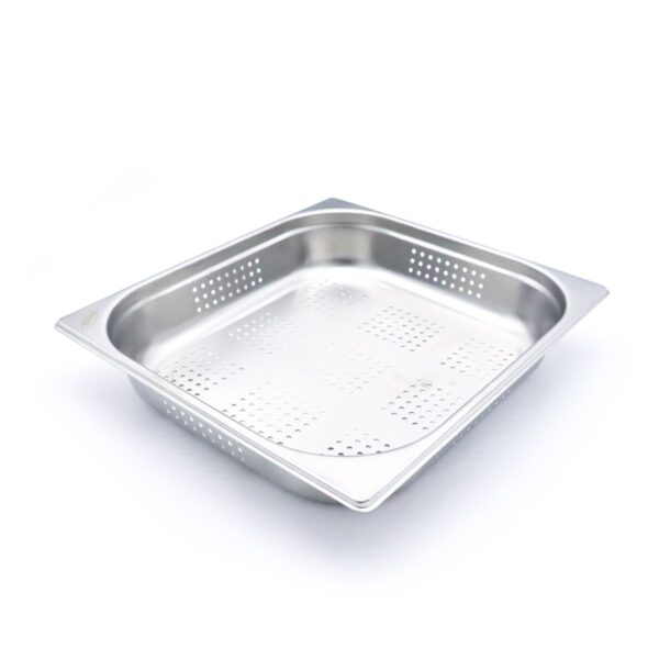 Ook is het goed te weten dat de GN-bak voldoet aan de Europese eisen omtrent voedselveiligheid. Dankzij de kleine gaatjes aan de onderkant kun je de bak gebruiken om groenten en andere etenswaren te laten uitlekken.