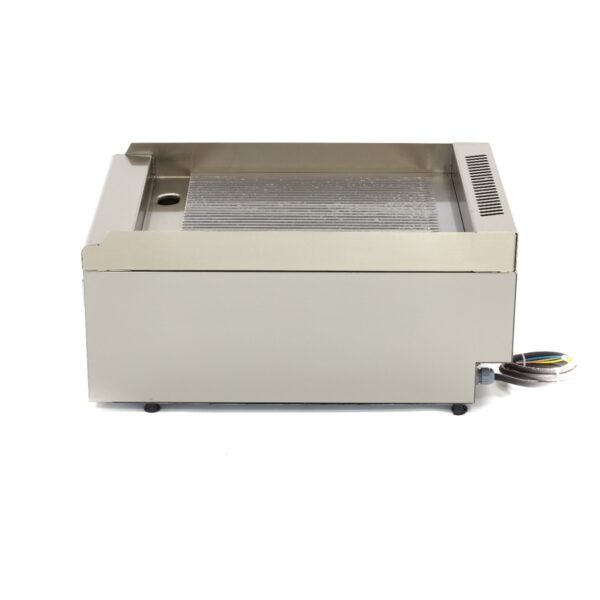 Deze gegroefde elektrische grillplaat met een afmeting van 40 x 60 cm is zeer geschikt voor gebruik in een bakwand of baklijn. Eenvoudig te bedienen en gemaakt van RVS dus ook nog eens makkelijk schoon te maken.