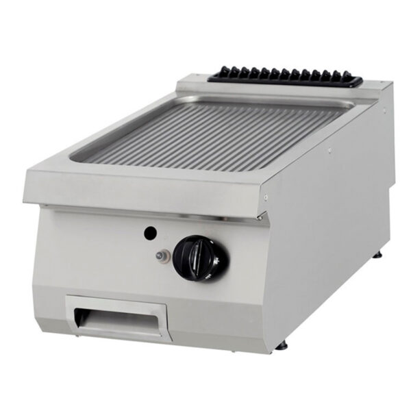 Op een hete grillplaat zijn je gerechten het lekkerst! Smaak en vitamines blijven langer behouden en vlees, groente en vis zijn snel klaar. Deze gegroefde gasplaat heeft een stalen plaat van 15 mm dik. Hij past in een bakwand en mede dankzij de diepte van 900 mm kun je er toch grote hoeveelheden tegelijkertijd op bakken. De grillplaat is mooi verzonken in een waterdichte uitsparing en de bovenkant is naadloos gelast. Een rvs spatscherm mag natuurlijk ook niet ontbreken. Door de warmte altijd gelijkmatig wordt verdeeld kun je ook daadwerkelijk het gehele bakoppervlak gebruiken en maakt hij efficiënt gebruik van het gas.