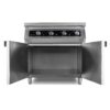 Je werkruimte netjes houden tijdens het koken is cruciaal om efficiënt te kunnen werken. Het moeten zoeken naar al je extra keukengerei kost veel tijd en kan een domino-effect hebben in drukke commerciële keukens. Extra opbergruimte zodat je al je benodigdheden altijd bij de hand hebt, kan een grote hulp zijn. Deze brander heeft een dubbeldeurskast voor het opbergen van extra spullen die je nodig hebt.
