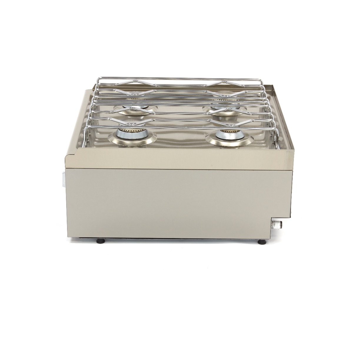 Met vier pitten is deze kookplaat speciaal ontwikkeld voor intensief gebruik in grote keukens. Een zeer welkome aanwinst in elk restaurant, lunchroom, hotel of cateringbedrijf. De draagbeugels waar de pannen op gezet kunnen worden zijn gemaakt van RVS. Het compacte formaat heeft als voordeel dat deze gemakkelijk geplaatst kan worden of snel op een andere plek neergezet kan worden.