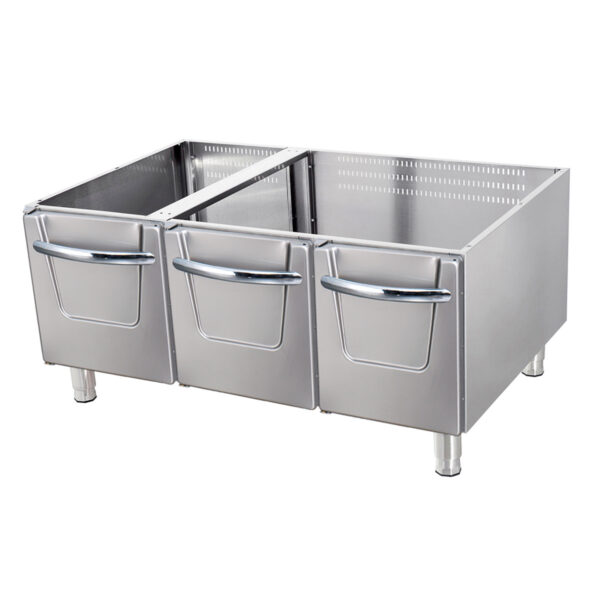 Wanneer je de fraaie keukenapparatuur uit de 900 kooklijn in je keuken hebt staan, dan mag dit driedubbele onderstel daar niet bij ontbreken. Het onderstel is voorzien van een eenvoudig aansluitmechanisme zodat je deze kunt koppelen met andere componenten uit de 900 kooklijn-serie.