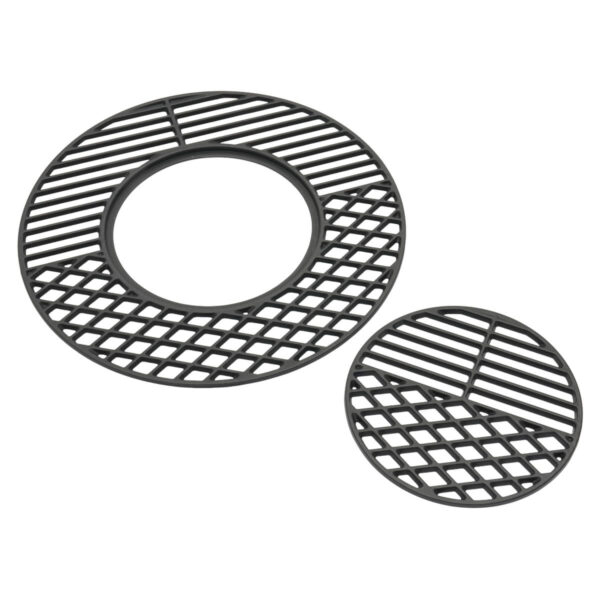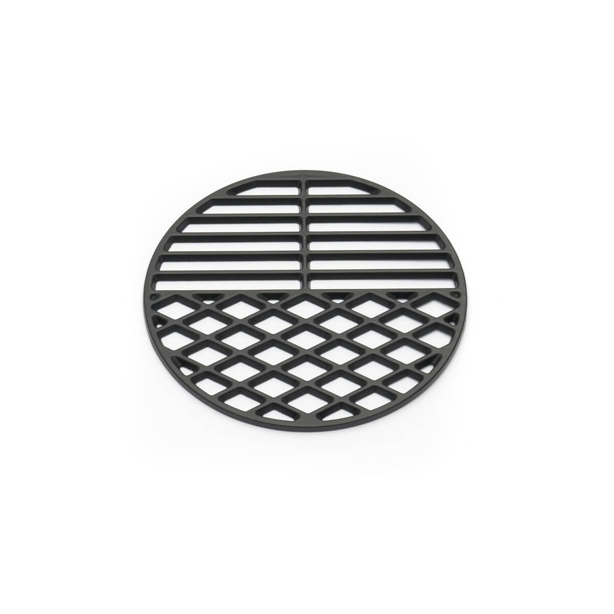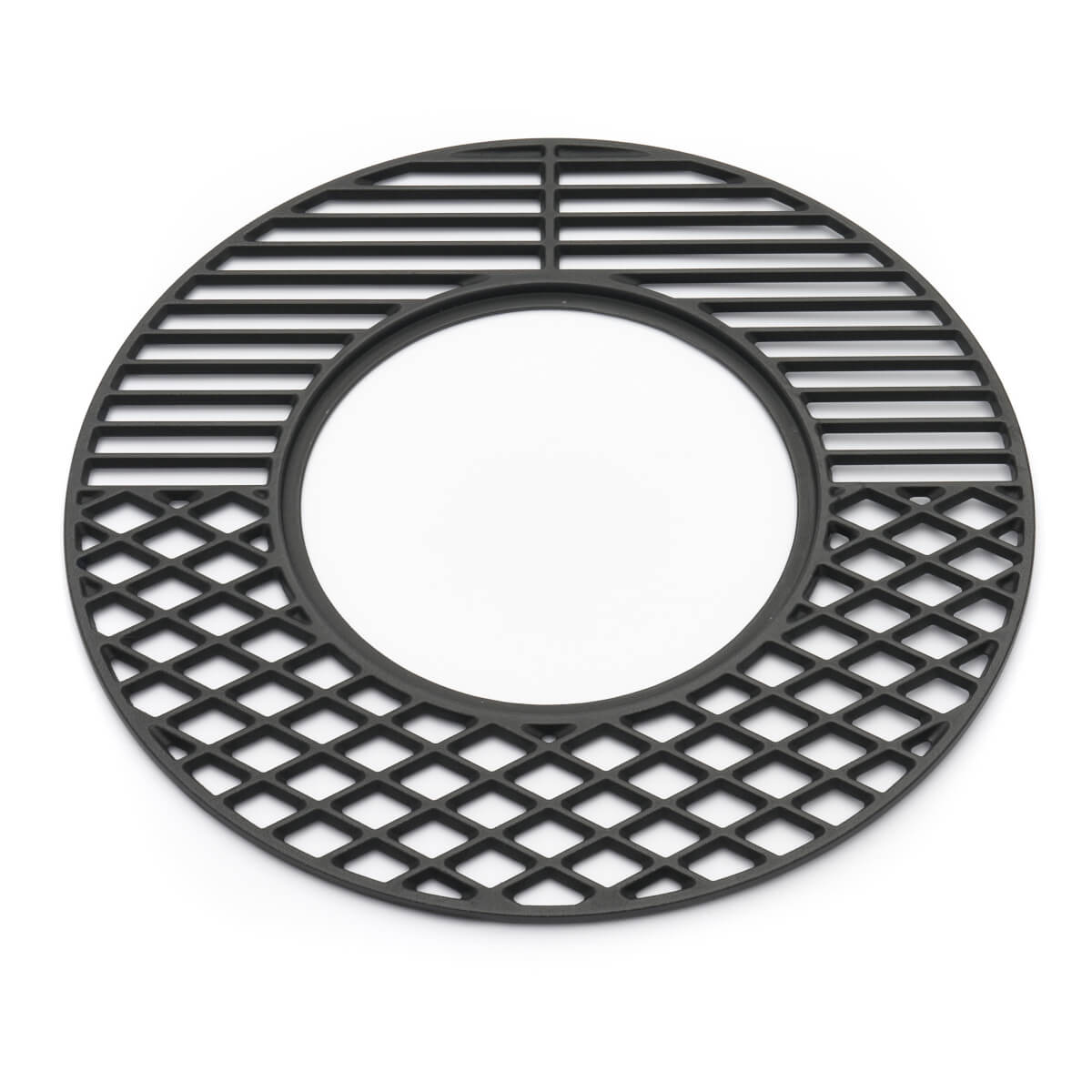 rooster. Doordat gietijzer een meer gelijkmatige warmte afgeeft, levert dit een perfect warmteoppervlak op voor het dichtschroeien van vlees. Gietijzer blijft ook langer warm dan een stalen rooster. En uiteraard zorgt dit grillrooster voor de bekende grillstrepen op steaks.