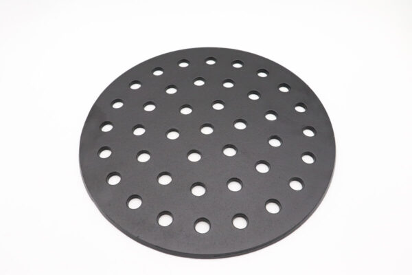 Het gietijzeren houtskoolrooster ligt op de bodem van de keramische fire box / vuurkorf van de Kamado. De kolen liggen op het houtskoolrooster en de gaten in het rooster zorgen voor een goede luchtcirculatie. Het houtskoolrooster wordt standaard bij de barbecue geleverd, maar na verloop van tijd kan het rooster aan vervanging toe zijn.