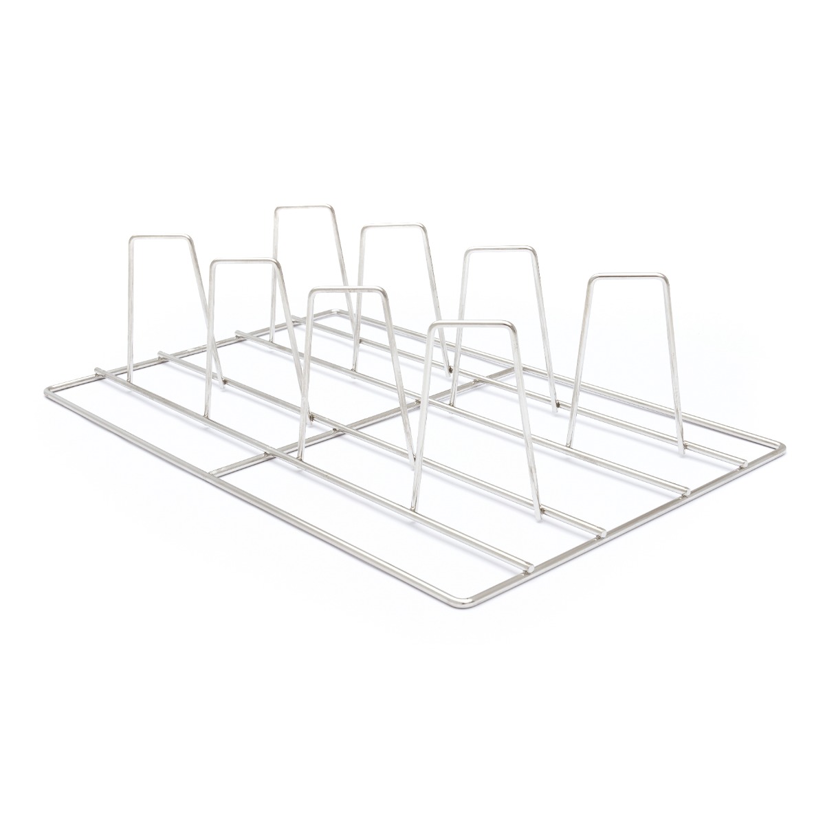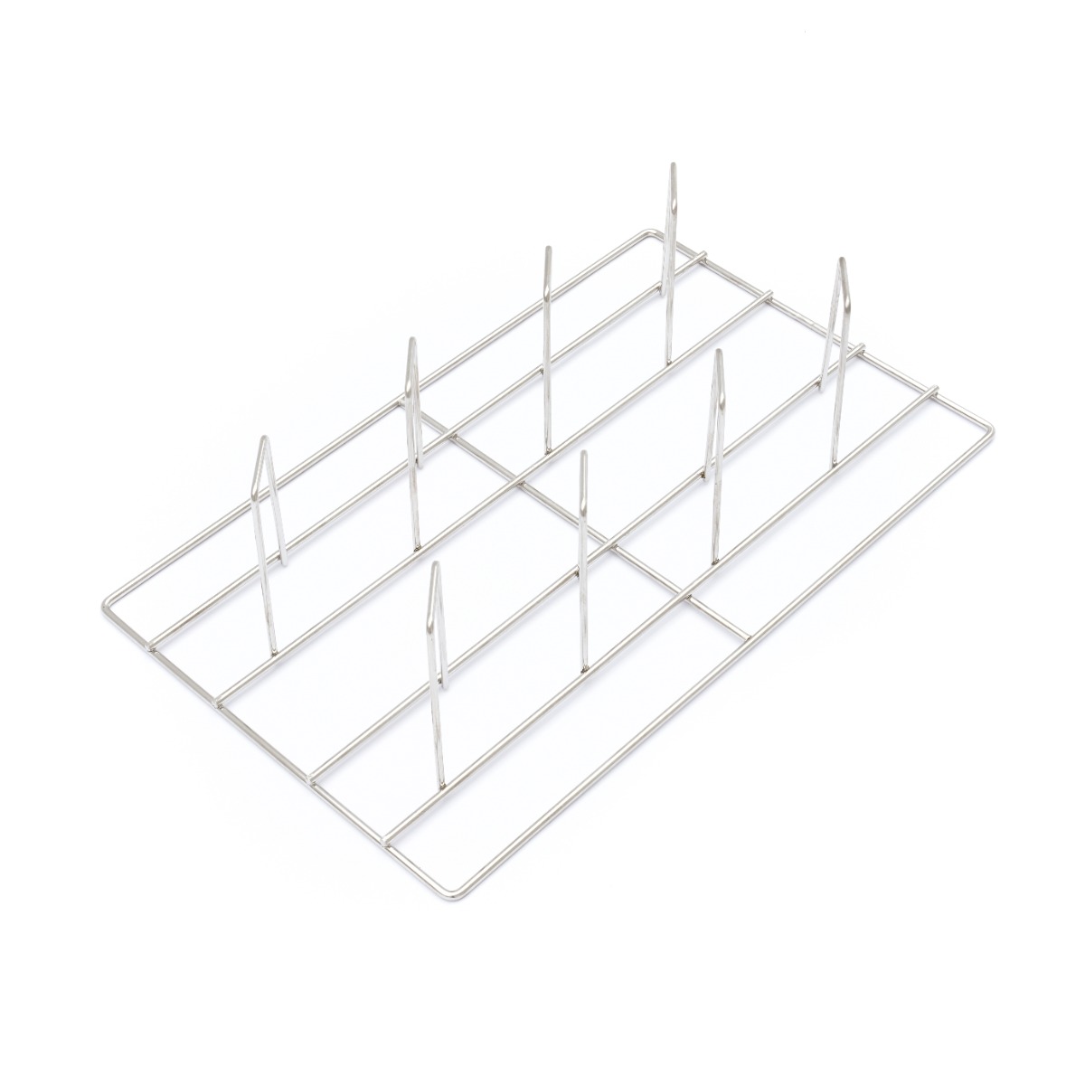 Een ovenrooster voor gevogelte is een speciaal ontworpen om het braden of bakken van gevogelte, zoals kip of kalkoen, in een oven te vergemakkelijken. Dit ovenrek heeft een verticaal ontwerp met haken om het gevogelte tijdens het bakken in een verticale positie te houden. Door deze positie kunnen de sappen van het gevogelte naar beneden druipen en het vlees bedruipen terwijl het kookt, wat resulteert in vochtig en smaakvol gevogelte met een knapperige korst.