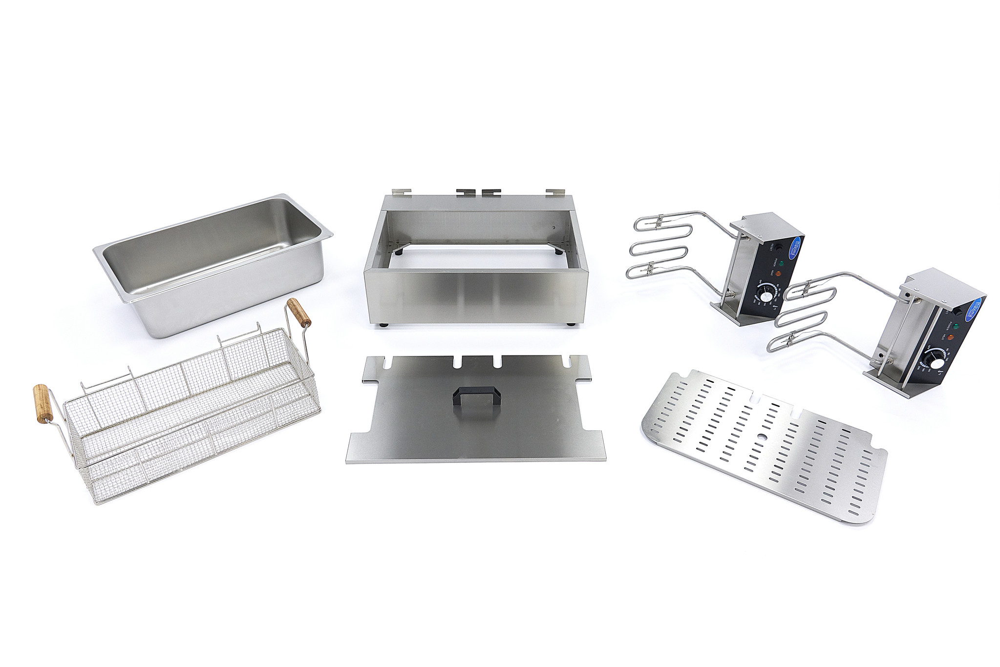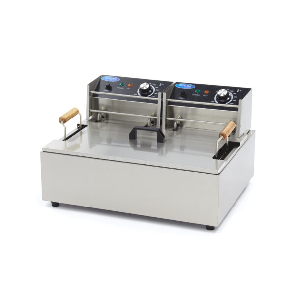 Met deze frituurpan voor de horeca werk je sneller en slimmer. Met één grote frituurmand en twee aparte verwarmingselementen, frituur je snel grote hoeveelheden frites en snacks.
