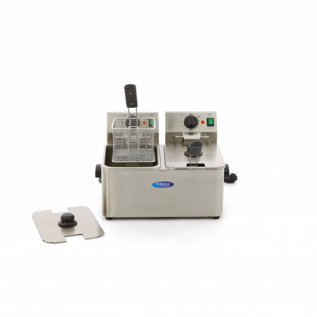 Jouw klant is koning met deze dubbele horeca friteuse want er hoeft niet meer gewacht te worden. Dankzij de 2 x 4 liter frituurpannen kun je dubbel zoveel producten bereiden in dezelfde tijd. Dit tafelmodel is zeer geschikt voor de professionele horecakeuken en kan geplaatst worden op de werkbank of op een tafel. Je bakt er snel 2 x 1,0 kg frites mee of andere heerlijke hapjes en snacks. Met behulp van de gebruiksvriendelijke thermostaat stel je de temperatuur in voor elke frituurpan afzonderlijk. Ideaal wanneer je in de ene frituurpan frites wilt bereiden en in de andere frituurpan snacks. Je kunt een temperatuur kiezen tussen de 0°C en 190°C. Ook beschikt de friteuse over een indicatielampje die aangeeft wanneer de pan gereed is voor gebruik.