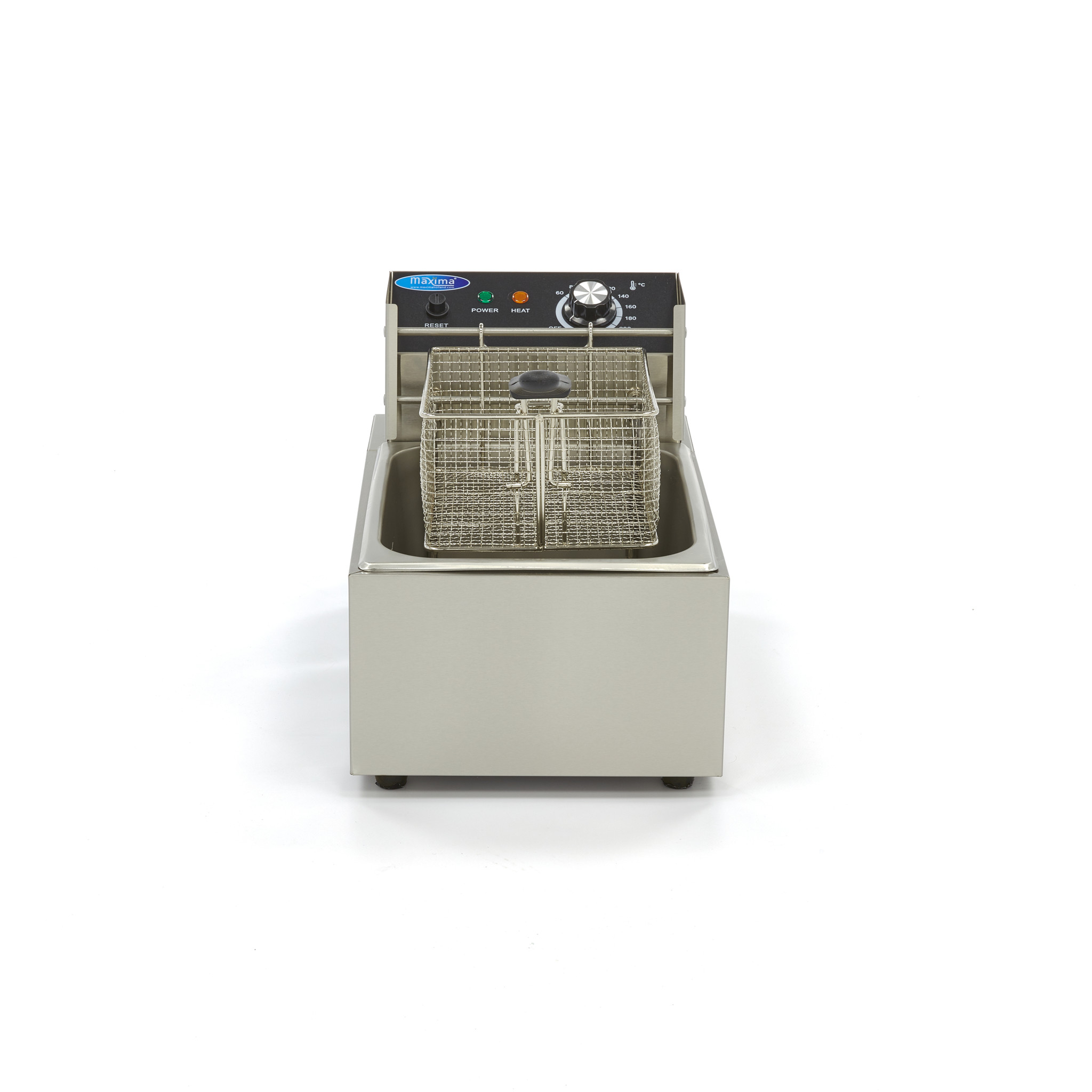 Deze roestvrijstalen frituurpan met enkele pan is geschikt voor het bakken en frituren van frites en snacks. In de uitneembare bak van 10 liter kun je 6 liter aan olie kwijt om maximaal 1,2 kg frites te frituren. De elektrische horeca friteuse heeft een afneembaar deksel en vier rubberen voetjes waardoor deze erg stabiel staat. Dankzij de instelbare thermostaat stel je de juiste temperatuur in voor het bakken van krokante frites en hapjes. De temperatuur is instelbaar van 0°C tot 200°C.