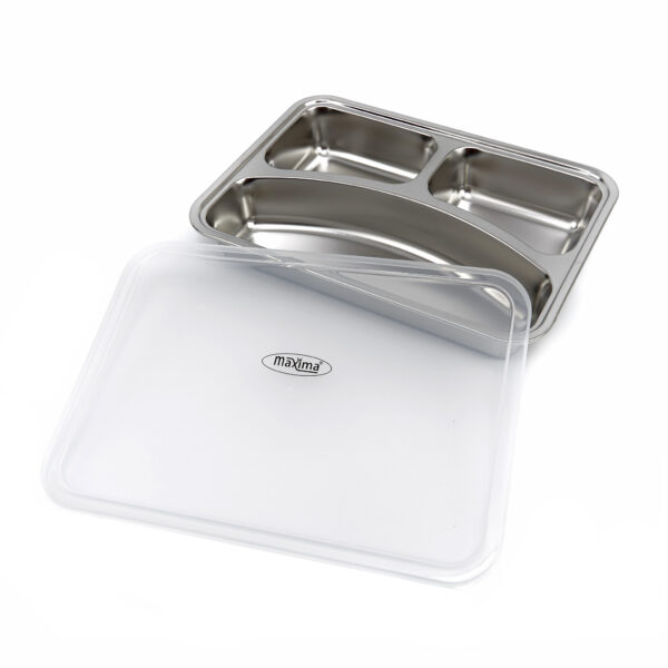 Dit bord komt goed van pas om de ingrediënten van een maaltijd gescheiden in te bewaren. Door het af te sluiten met een plastic deksel (niet standaard meegeleverd) kun je het bord luchtdicht afsluiten. Zo blijft de inhoud langer vers en kun je niet morsen als je de maaltijd vervoert.