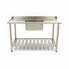 Deze professionele spoeltafel is gemaakt van hoogwaardig RVS en heeft een handige waterkering aan de zij- en achterkant. Aan de onderkant van de spoeltafel bevindt zich een onderschap voor het opbergen van bijvoorbeeld de vaatwaskorven en het vaatwasmiddel. Deze spoeltafel beschikt over een spoelbak in het midden van de werktafel.