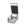 Het is een zeer compacte en semi-automatische top sealer die weinig plek inneemt in de horecakeuken. De mallen zijn van topkwaliteit en gemaakt van aluminium. Aan de achterzijde van de machine bevindt zich een handige houder voor de folierol.