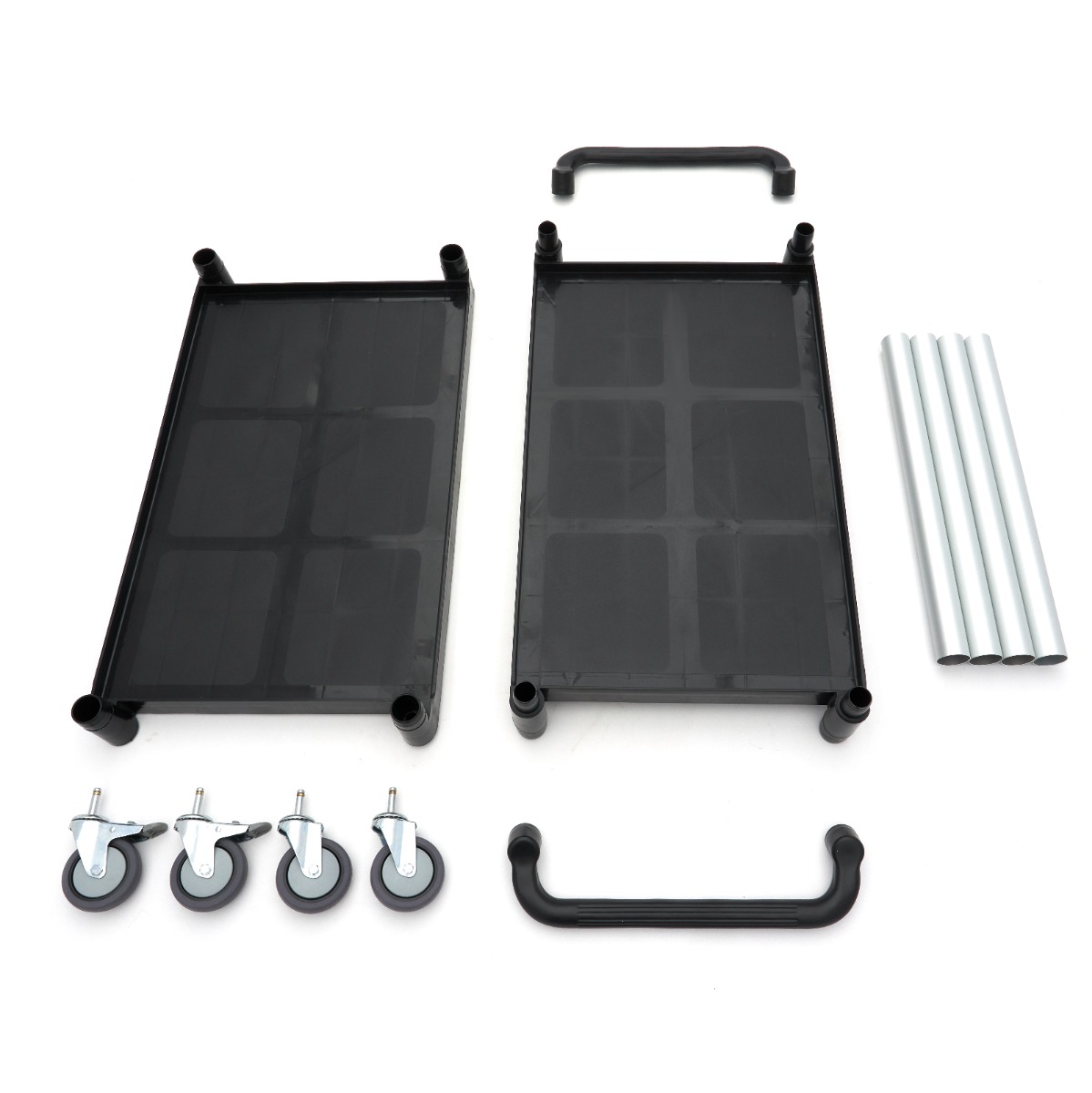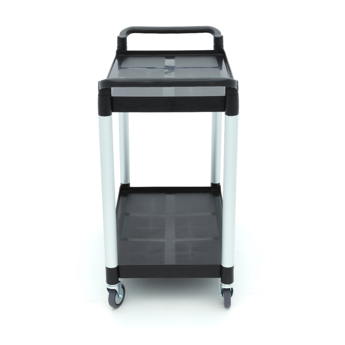 De serveerwagen is gemaakt van aluminium en is geschikt voor dagelijks gebruik. De twee kunststof werkbladen van de serveerwagen zijn verstevigd in de hoeken en kunnen een maximale belasting aan van 50 kg per plank. De werkbladen hebben een opstaande rand, zodat vaatwerk er niet af kan vallen. Voor soepele bewegingen is de serveerwagen voorzien van vier handige zwenkwielen, waarvan twee met rem. Hierdoor kun je de serveerwagen gemakkelijk op elke plek neerzetten zonder dat hij wegrolt.