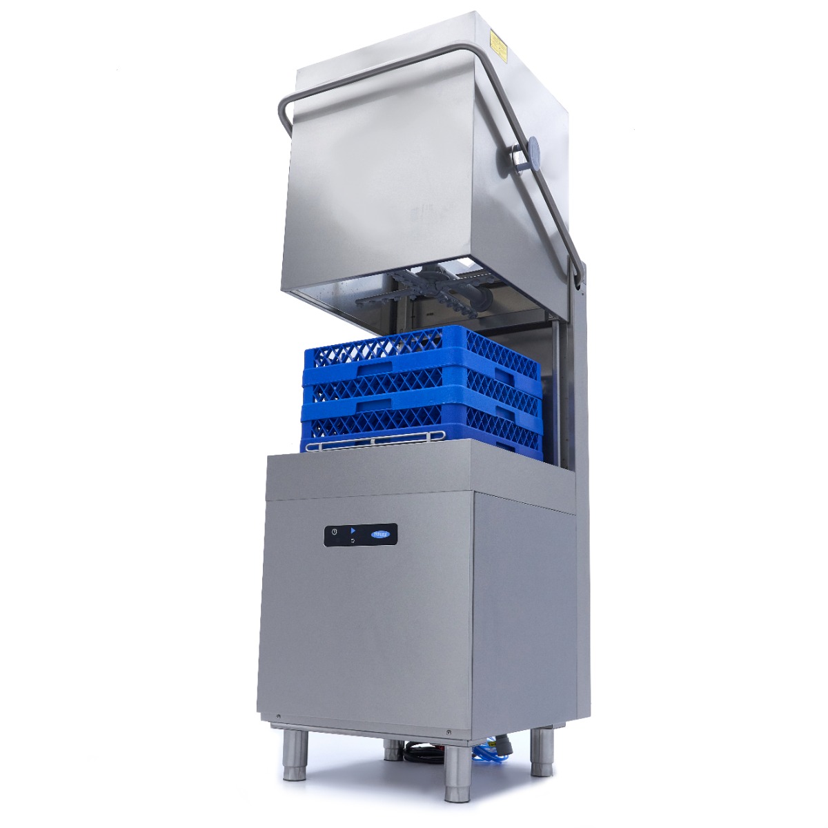 Deze doorschuifvaatwasser is volledig gemaakt van roestvrij staal, dat zeer snel en gemakkelijk schoon te maken is. De gladde oppervlakken kunnen worden afgenomen met een vochtige doek. De wasarmen aan de binnenkant zijn gemaakt van speciaal ABS en kunnen worden gereinigd met een doek en water. De vaatwasser is ook uitgerust met een glansspoel- en zeeppomp.