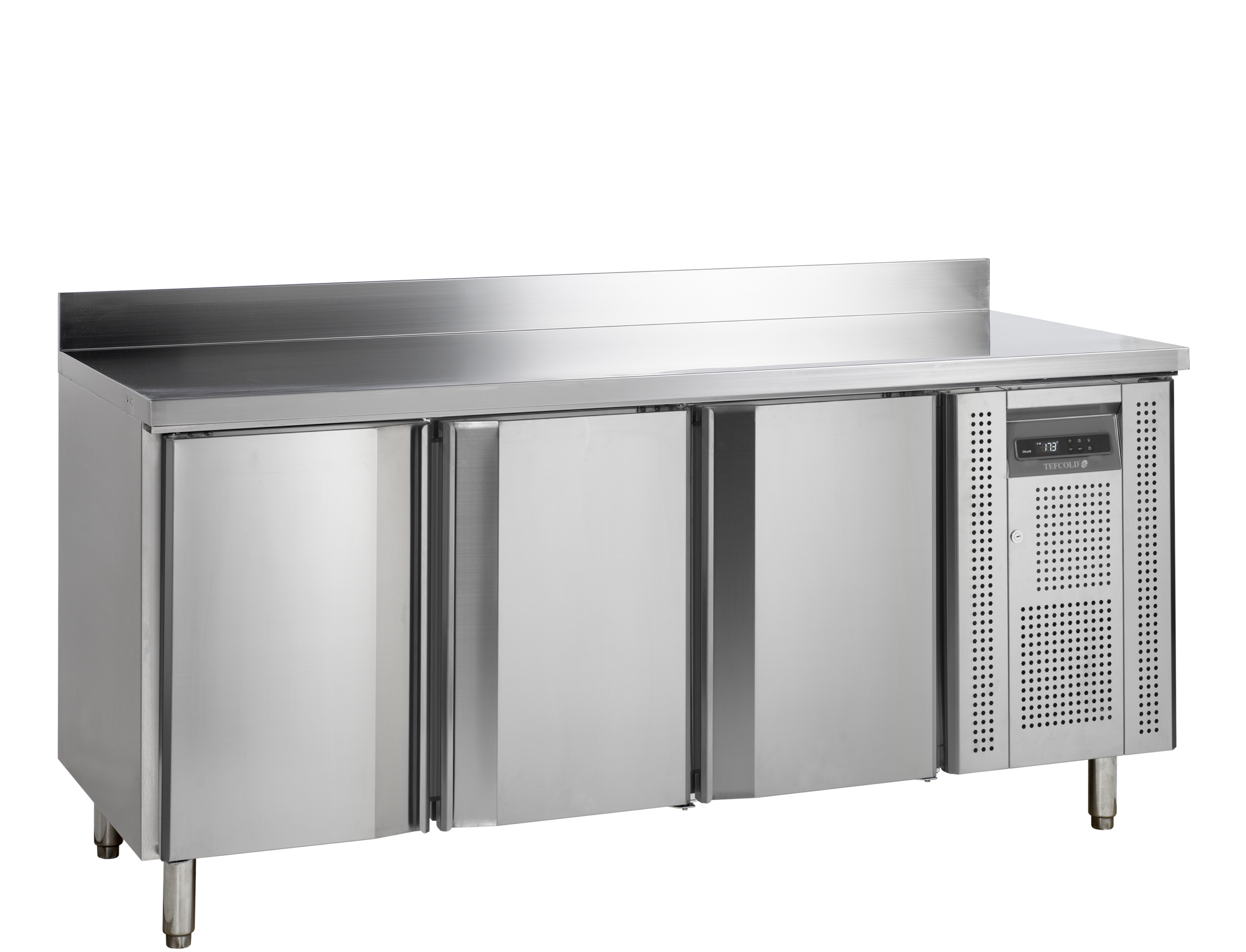 The SK-BT range of snack counter freezers is made in SS304 stainless steel. The term “snack” is used for gastro products, which do not have gastronorm dimensions. The snack counters have a depth of only 600 mm which makes them ideal for kitchens with limited space. Available in several sizes from 2-4 doors and in models with a removable tabletop with or without a splashback. They all have ventilated cooling to ensure an even and steady temperature. Also available in a cooler option (SK range).