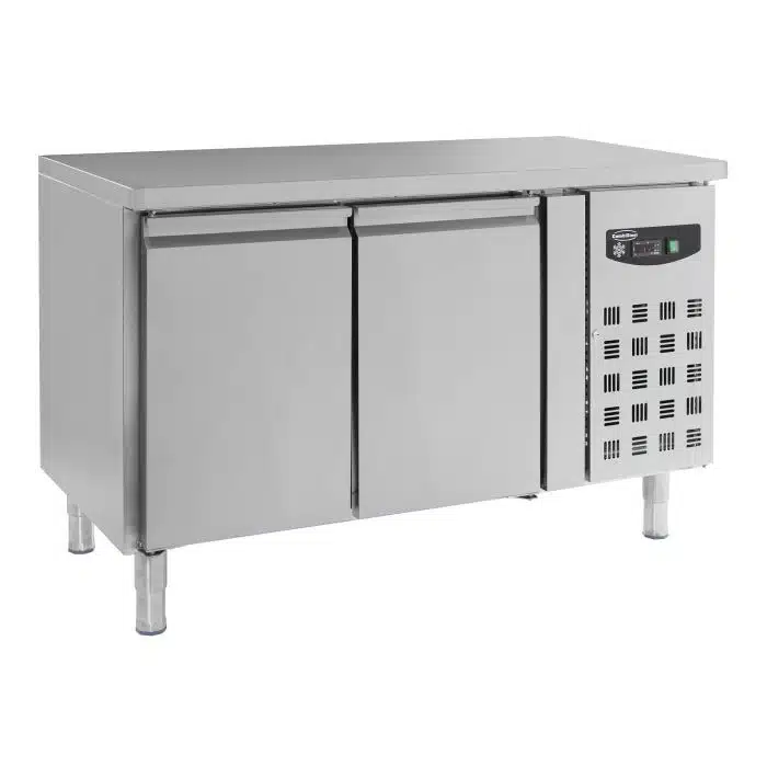 Deze budgetvriendelijke 2-deurs vrieswerkbank is de ideale oplossing voor horecagelegenheden die op zoek zijn naar betrouwbare vriesopslag en werkruimte en één betaalbare koeloplossing. Met een robuust roestvrijstalen ontwerp biedt deze vrieswerkbank niet alleen duurzaamheid maar ook een strak uiterlijk dat perfect past in elke professionele keuken. Achter stevige deuren biedt deze werkbank voldoende opslagcapaciteit. Het roestvrijstalen werkblad zorgt voor een hygiënisch en duurzaam werkoppervlak, ideaal voor dagelijks gebruik in een drukke keuken. Dankzij de verstelbare poten kunt u de werkbank eenvoudig op de gewenste hoogte instellen. Deze vrieswerkbank combineert functionaliteit met een scherp geprijsd budget, zonder in te leveren op kwaliteit of prestaties.