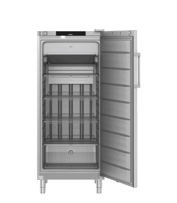 In deze roestvrijstalen vriezer met NoFrost ontstaat geen ijsvorming en is handmatig ontdooien niet nodig. Bij een 90° openingshoek blijft de automatisch sluitende deur open staan voor gemakkelijk in- en uitladen. Wanneer de deur te lang open staat zorgt het LigthAlarm dat dit snel wordt opgemerkt en kan worden opgelost. Door minimale temperatuurschommelingen blijven producten langer vers. Een herinnering kan worden ingesteld. Zo kun je bijvoorbeeld zien hoeveel dagen overblijven tot de volgende reiniging. Het aanraakdisplay is intuïtief dankzij de symbolen.