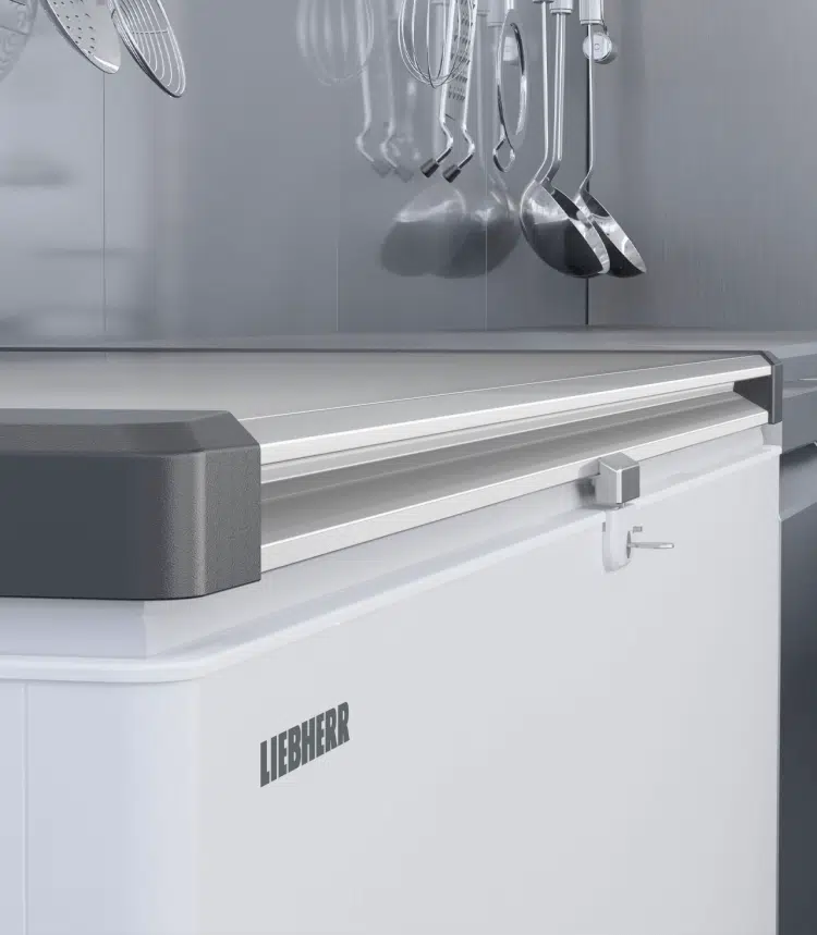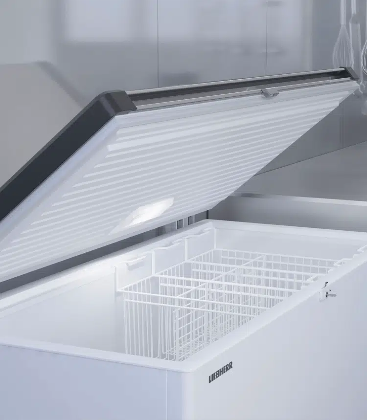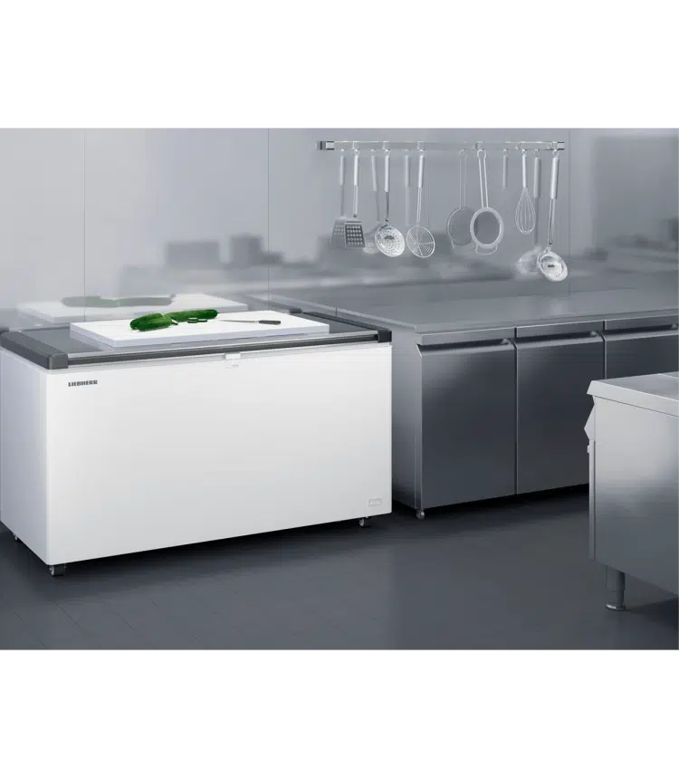 De Liebherr EFL 6056 is een 188,5 cm brede statische roestvrijstalen diepvrieskist met SmartFrost, daardoor ontstaat er minder ijsvorming en is ontdooien eenvoudig en minder vaak nodig. Deze diepvrieskist is professioneel uitgerust met handige functies, waaronder een nauwkeurige temperatuurmeter, een veilig slot, een sterke aluminium profielgreep, dekselverlichting voor optimale zichtbaarheid van de inhoud, een evenwichtige deksel en een praktische dooiwaterafvoer. Door de vier zwenkwielen is de diepvrieskist overal te plaatsen.