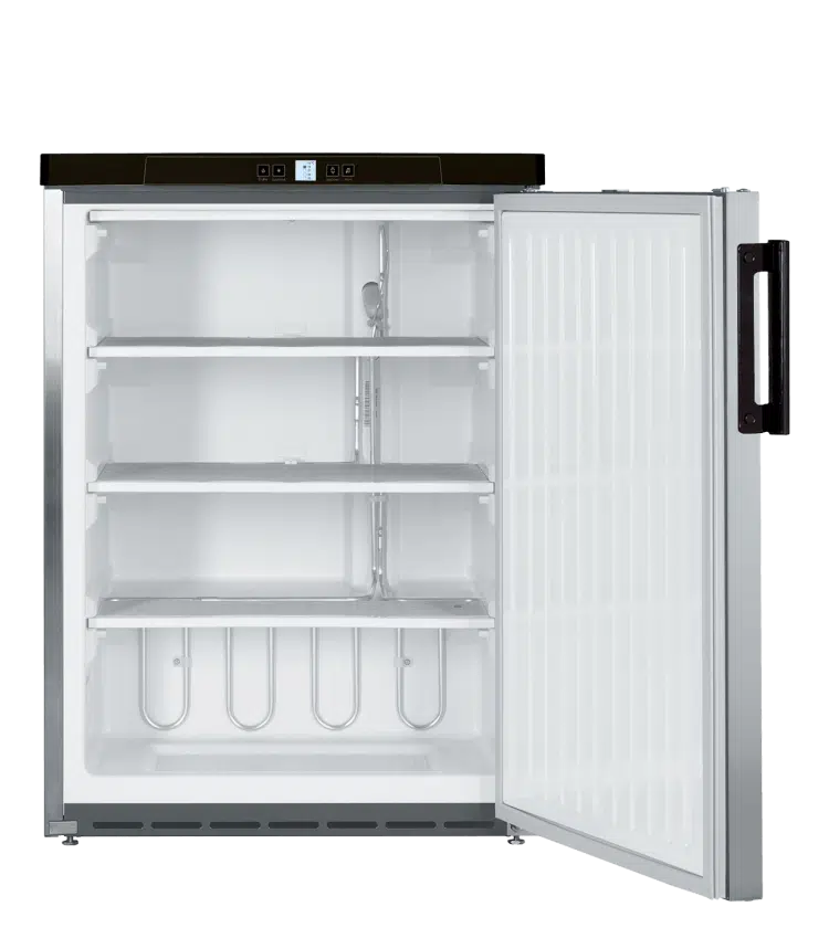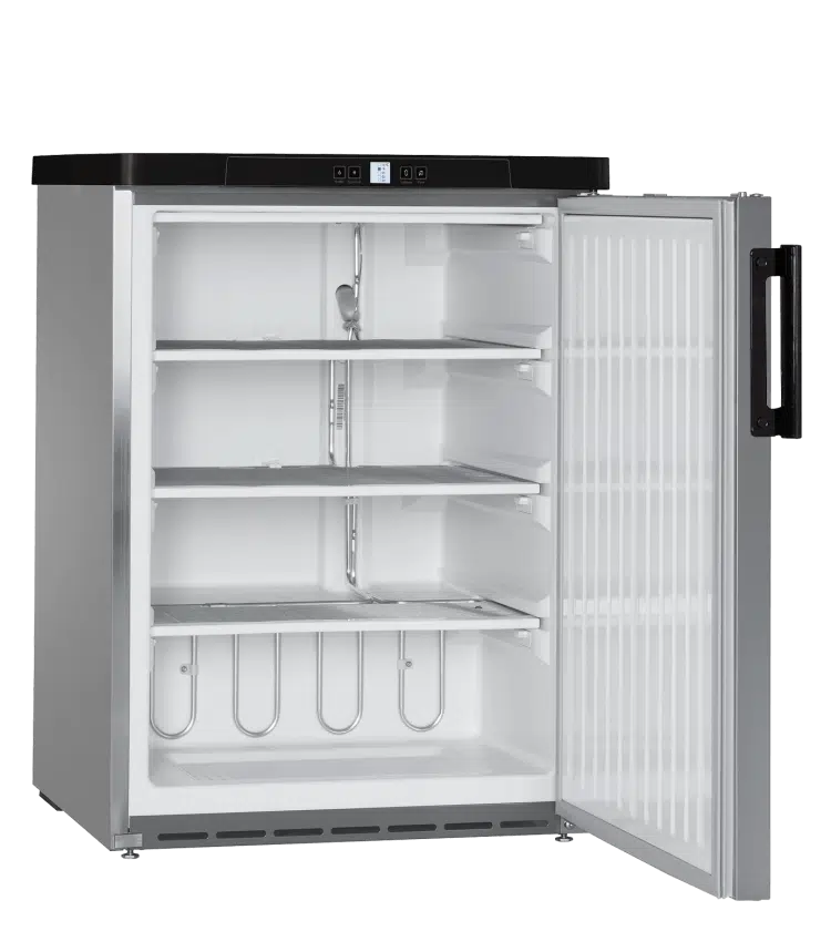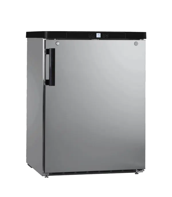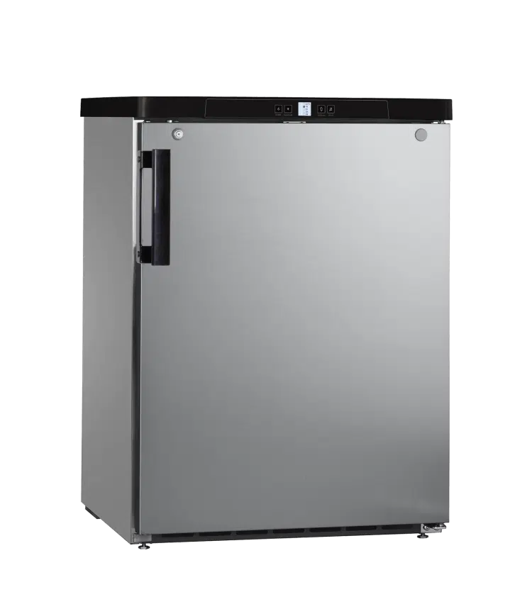 De Liebherr GGUesf 1405 tafelmodel vrieskast biedt een perfecte combinatie van verfijning en functionaliteit. Het roestvrijstalen ontwerp met een elegante zwarte handgreep en staalgrijze zijwanden geeft het apparaat een luxueuze uitstraling. Het model biedt een instelbaar temperatuurbereik en is voorzien van vaste verdamperplaten, die zorgen voor een efficiënte en praktische vakindeling. Dankzij de innovatieve SmartFrost-technologie profiteert u van minder ijsvorming en een eenvoudiger onderhoud.