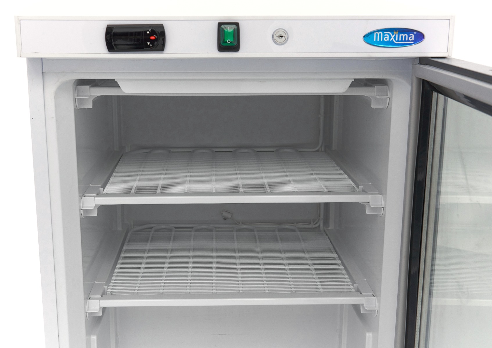 Deze professionele vriezer heeft een bruto capaciteit van 200L om diepvriesproducten in op te bewaren. Met zijn compacte formaat past deze witte vriezer naadloos in de meeste professionele keukens. Hij is voorzien van twee vaste roosters die voldoende opslagruimte bieden. De roosters zijn vast en zorgen voor een goede ventilatie. Door de glazen deur met slot kun je de ingevroren producten bekijken zonder de koelkast te openen.