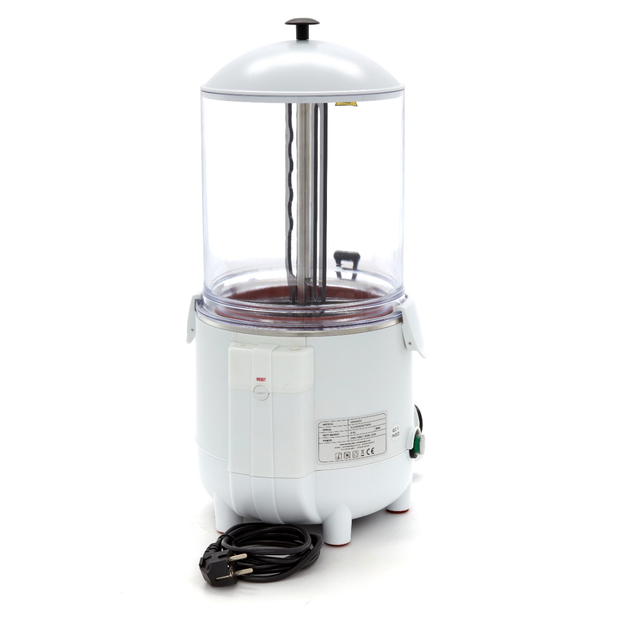 Met deze witte chocoladedispenser kun je gemakkelijk 10 liter warme chocolademelk schenken. De chocolademelk dispenser heeft een bain marie verwarmingssysteem, zodat de chocolademelk geleidelijk wordt verwarmd en niet verbrandt. Het roermechanisme met continue rotatie voorkomt klonteren en verstopping bij de aftapkraan.