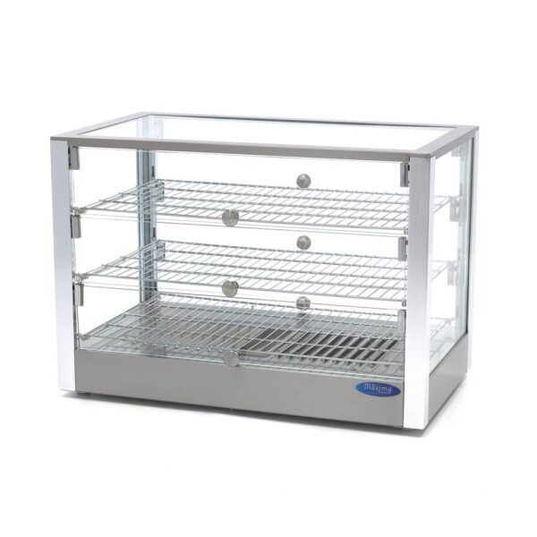 Zorg voor een aantrekkelijke én warme presentatie van je snacks en broodjes met deze professionele warmhoudvitrine van Maxima – stijlvol, efficiënt en klaar voor intensief gebruik.