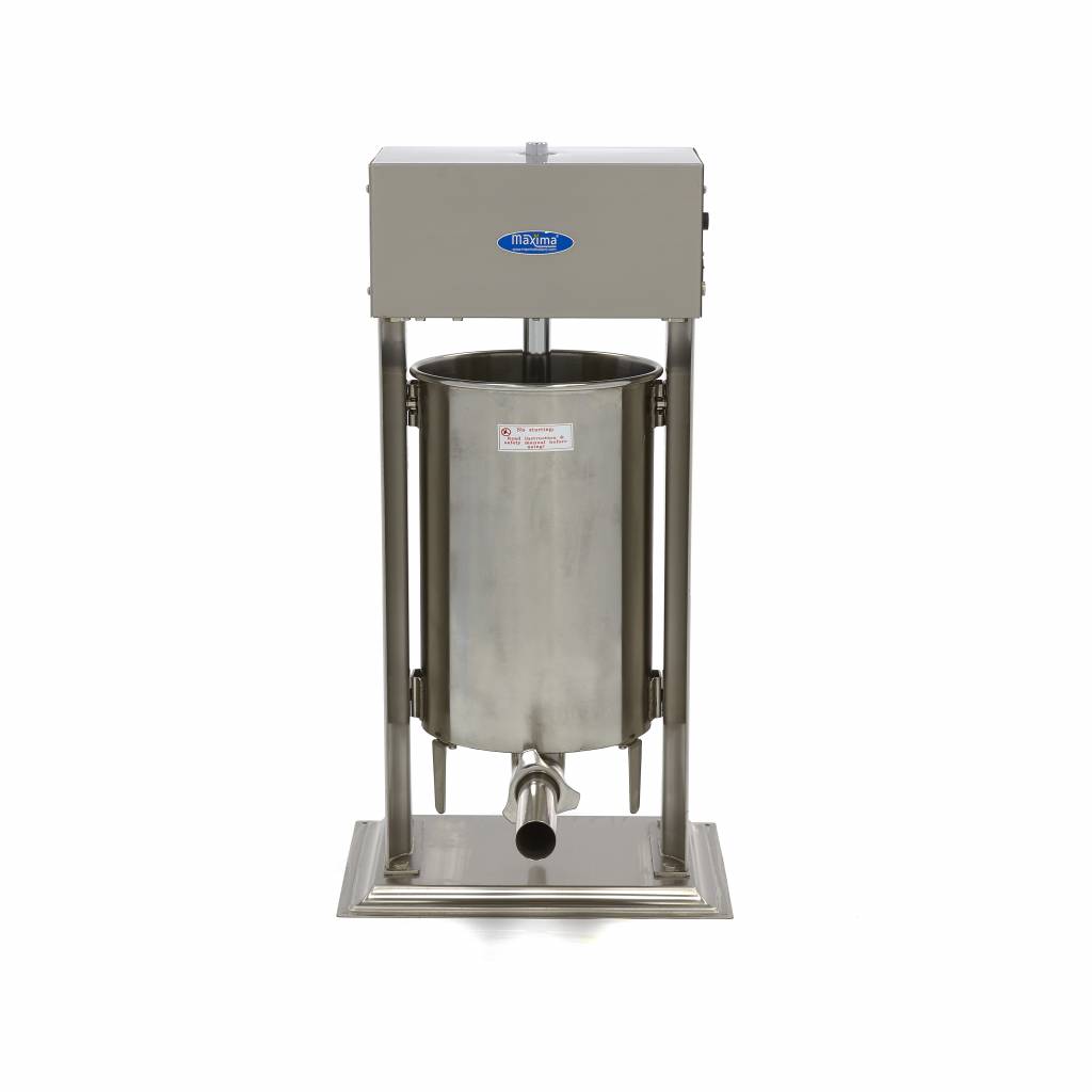 In de slagerij worden dagelijks veel worsten gevuld. Handmatig worsten draaien is een tijdrovende klus. Met deze automatische worstenvuller met een vulcapaciteit van 20 liter maak je binnen een mum van tijd grote aantallen worsten. Standaard wordt de worstenvuller geleverd met vier vulbuizen van 16, 22, 32 en 38 mm doorsnee. Ook krijg je er een voetpedaal bij. Op deze manier kun je de worstenvuller bedienen met je voet waardoor je je handen kunt gebruiken om snel worsten te draaien. Verder is de drukplaat voorzien van een gat voor ontluchting. Ook is de drukplaat mooi afgesloten met een seal. Je kunt kiezen uit tien verschillende snelheden zodat je altijd de juiste snelheid hebt om worsten perfect te vullen.