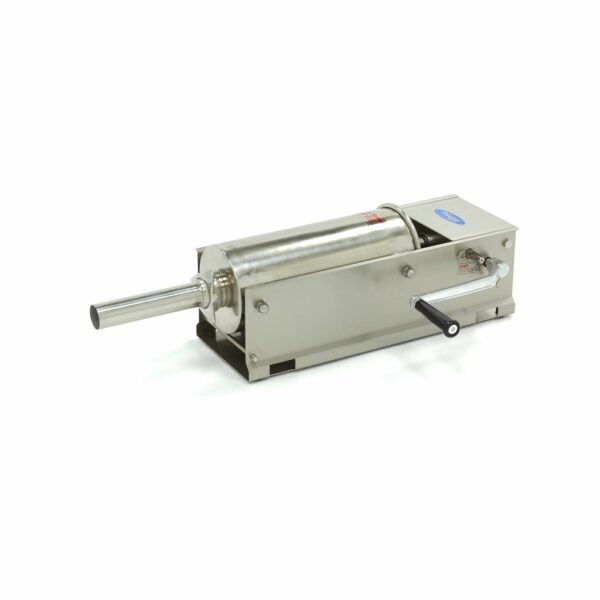 Wil je snel en efficiënt worsten maken, dan maak je gebruik van een professionele worstenmaker. Dankzij de horizontale positie past deze worstenvuller op elke werkbank. Met een vulcapaciteit van 5 liter maak je snel een groot aantal worsten. Het omhulsel waarin de worsten gemaakt worden schuif je eenvoudig over een van de vier meegeleverde vulbuizen heen. De afmetingen van de vulbuizen zijn: 16, 22, 32 en 38 mm doorsnee. Aangezien de drukplaat is voorzien van een gat voor ontluchting komt er zo min mogelijk lucht in de worsten. Daarnaast is deze mooi afgesloten met een seal. Aan de zijkant zit een slinger die handmatig te bedienen is om zo op twee snelheden worsten te draaien.