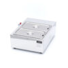 De chocoladesmelter heeft een waterbasin en 2 stuks 1/3 GN bakken waar de chocolade langzaam in kan worden gesmolten. Deze au bain marie methode voorkomt dat chocolade gaat verbranden en is ideaal voor ijssalons, pattiserieën en is ideaal voor ijssalons, patisserieën, cateringbedrijven en chocoladewinkels.