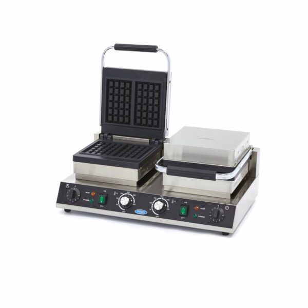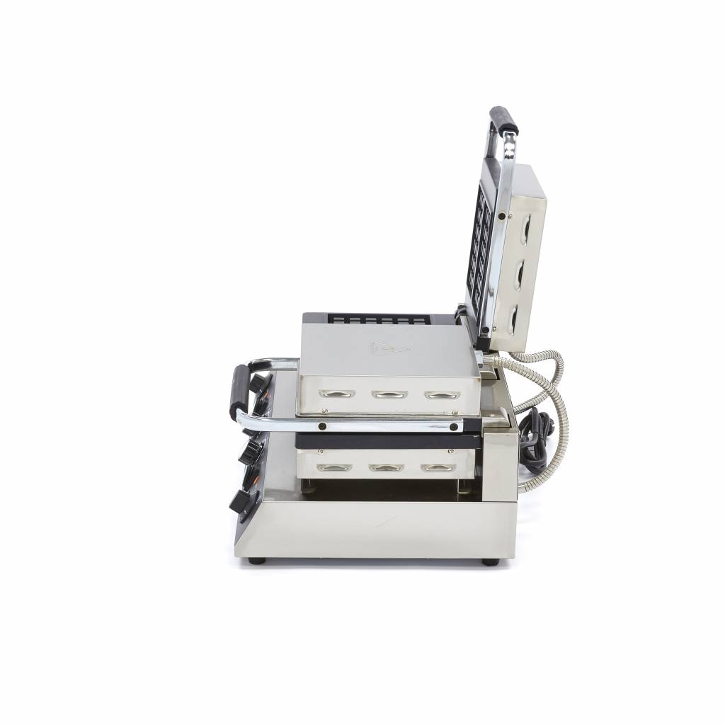 Dit hoge kwaliteit horeca wafelijzer beschikt over een klassieke vorm die zeer geschikt is voor het bakken van Brusselse wafels. Met de gebruiksvriendelijke thermostatische temperatuurregeling kies je elke gewenste temperatuur tussen de 50 en 300 graden Celsius. Je bakt makkelijk en snel vier wafels tegelijk.